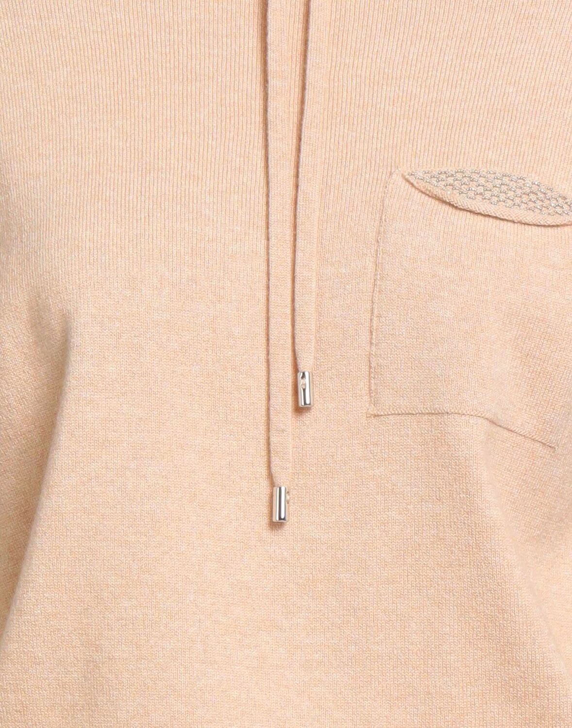 Вязаное, легкое трикотажное полотно, украшенное вышивкой, меланжевое, с высоким воротником, длинные рукава, один нагрудный карман, ручная стирка или химчистка, не отбеливать, не сушить в сушильной машине, размеры этой марки маломерят