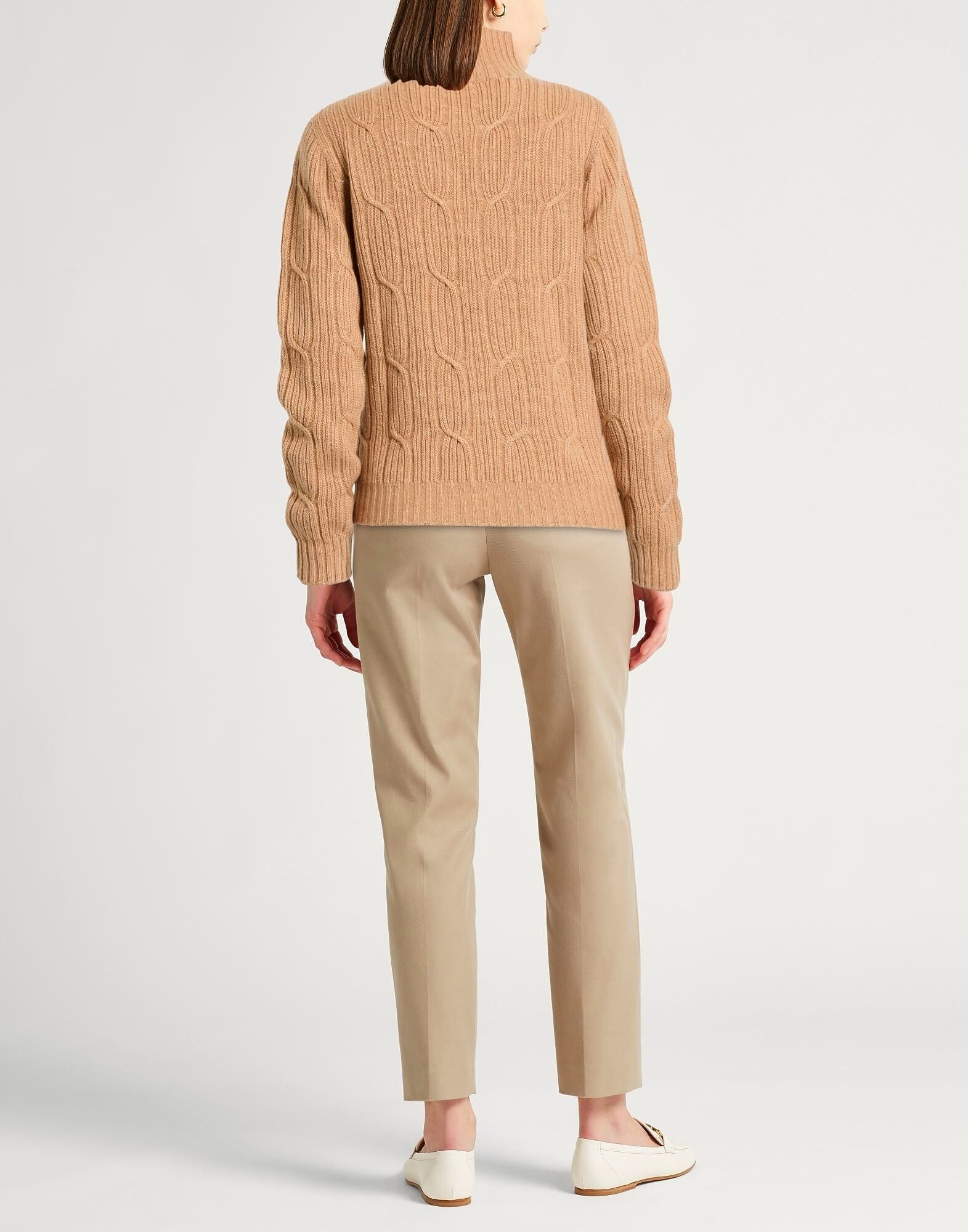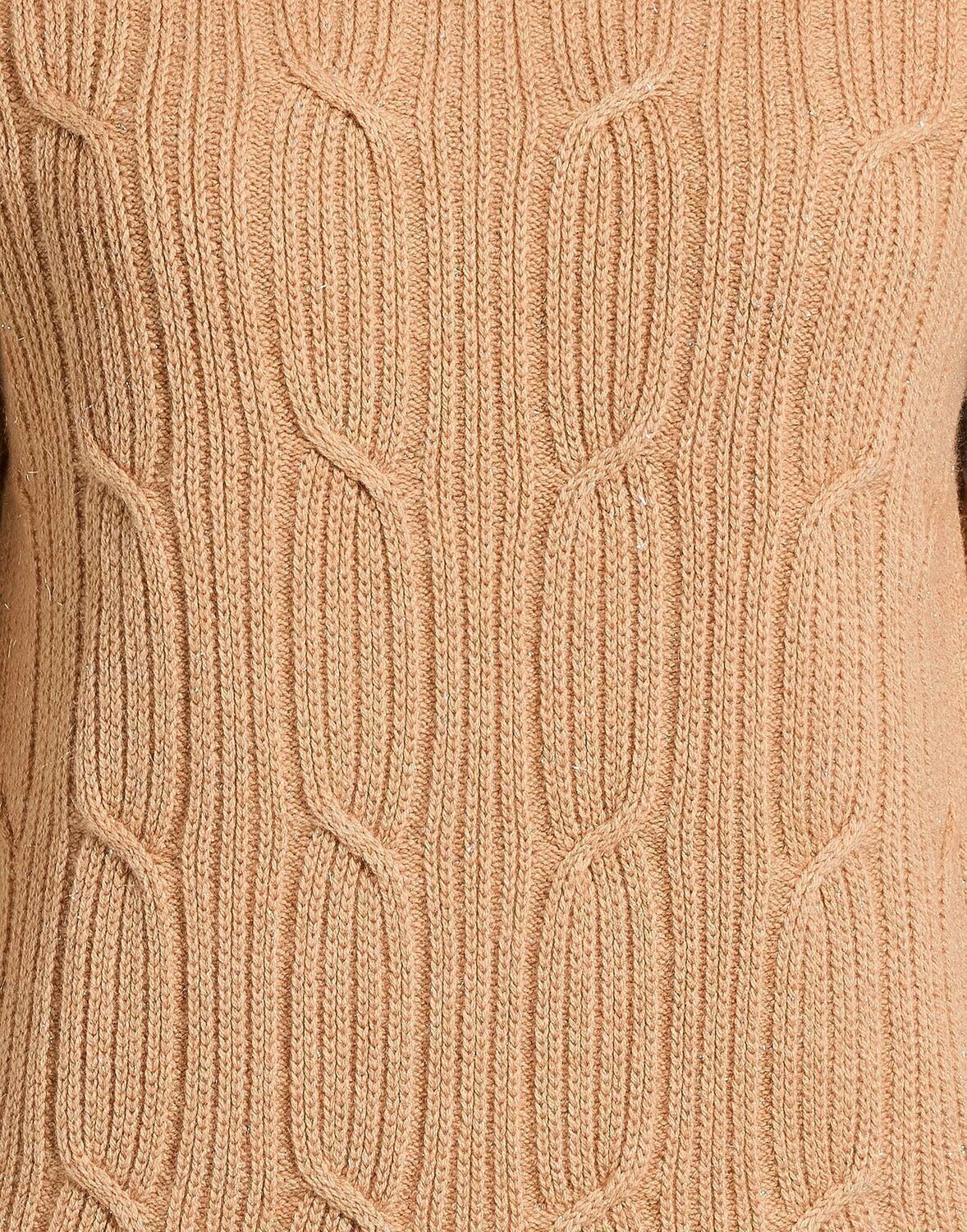 Вязаное полотно крупной вязки, лёгкая вязка, металлизированная нить, без аппликаций, однотонное, воротник-стойка, длинные рукава, ребристые манжеты, ручная стирка или химчистка, не отбеливать, не сушить в сушильной машине, размеры этой марки маломерят