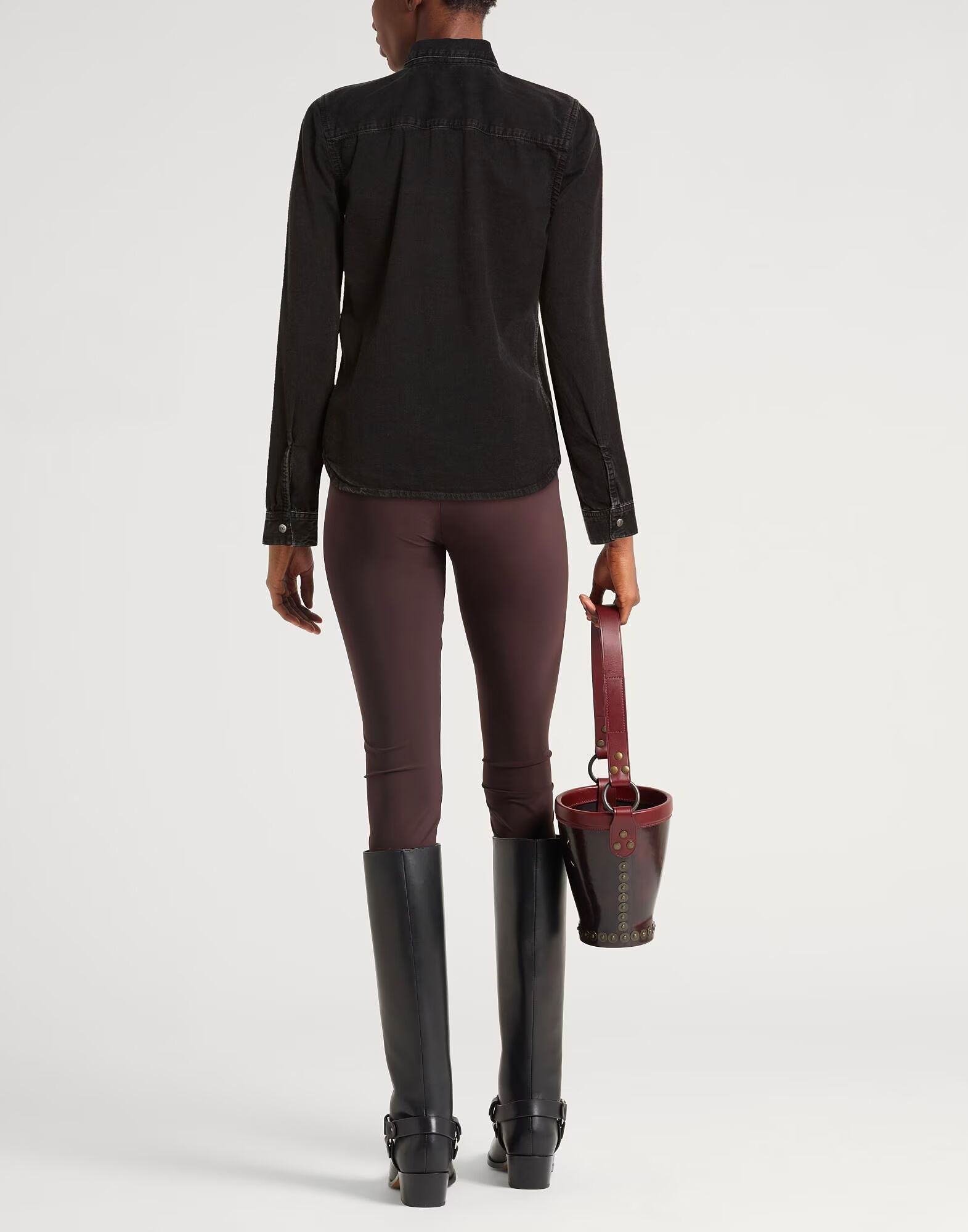Джинсовая ткань, однотонный цвет, вышитый логотип, цветная стирка, длинные рукава, манжеты на кнопках, застежка на кнопках, машинная стирка, не отбеливать, не сушить в сушильной машине