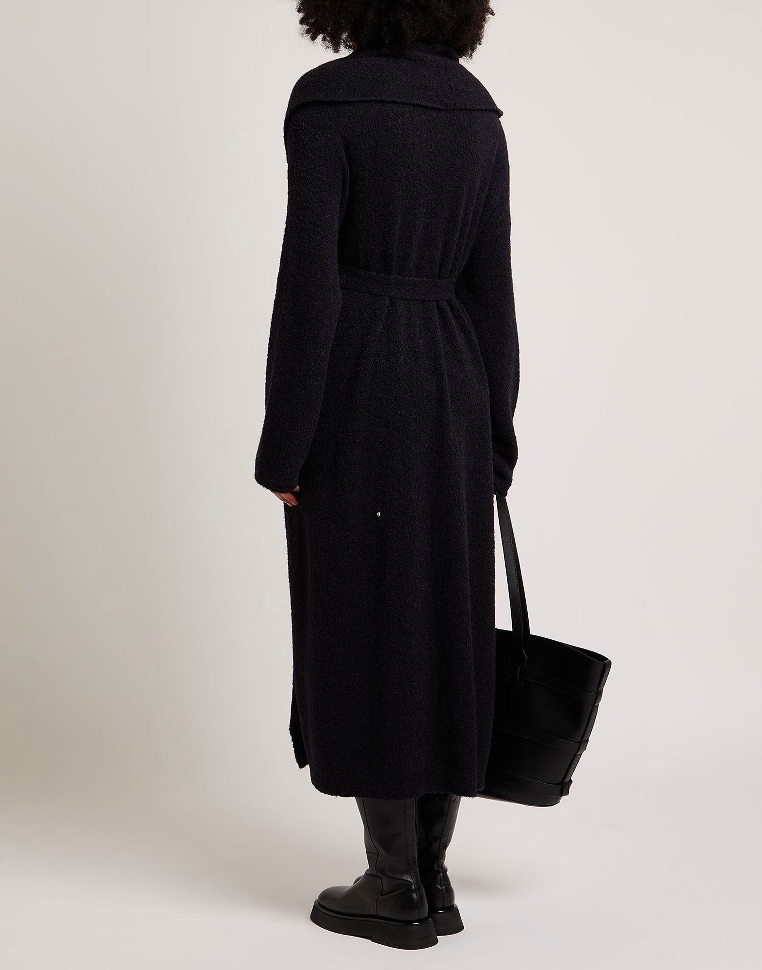 Вязаное изделие средней плотности, однотонное, с поясом, длинными рукавами, множеством карманов, ручная стирка или химчистка, не отбеливать, не сушить в сушильной машине