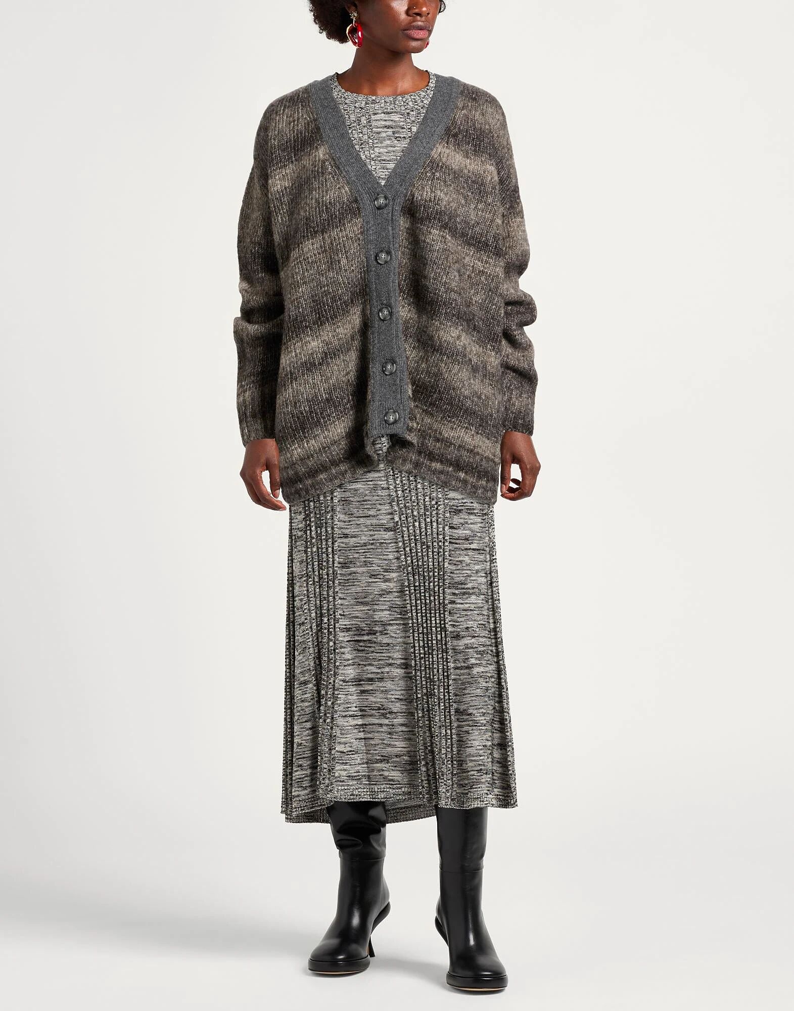 Вязаное, легкое трикотажное полотно, без аппликаций, меланж, длинные рукава, застежка на пуговицы, ручная стирка или химчистка, не отбеливать, не сушить в сушильной машине