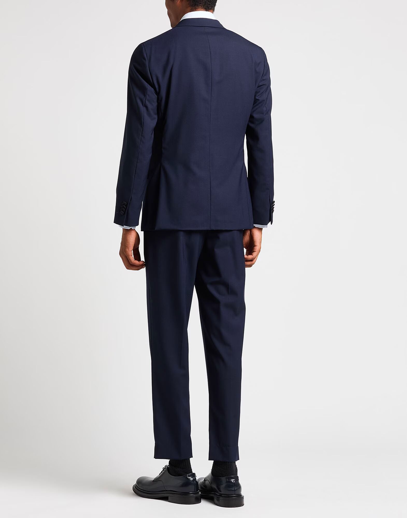 Однобортный костюм, шерсть, однотонный, атласная отделка, воротник с лацканами, длинные рукава, манжеты на пуговицах, полностью на подкладке, застежка на молнию, застежка на пуговицы, карманы, внутренние карманы, две разреза сзади, необработанный край подола, средняя посадка, химчистка, не отбеливать, не сушить в сушильной машине