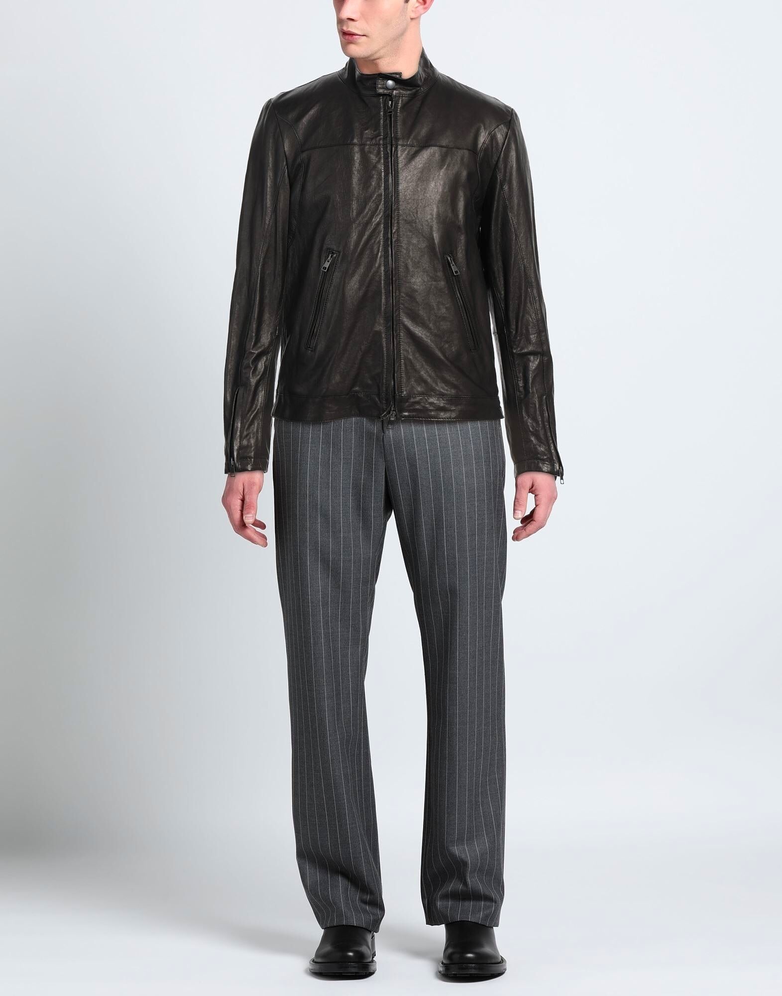 Кожа, без аппликаций, однотонный цвет, воротник-стойка, однобортный, длинные рукава, полностью на подкладке, застежка на молнию, застежка на кнопки, множество карманов, содержит нетекстильные части животного происхождения, байкерский стиль, маленький размер