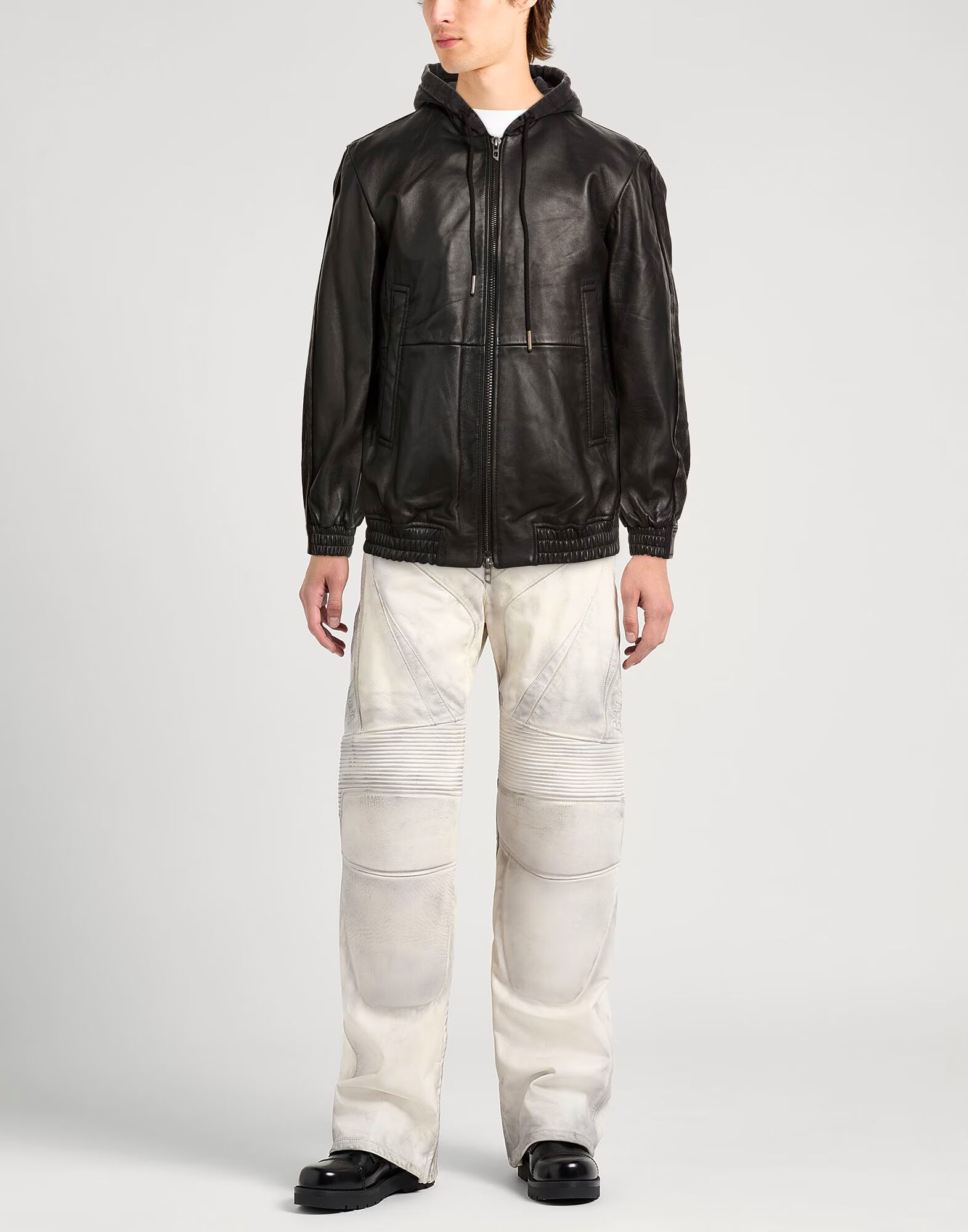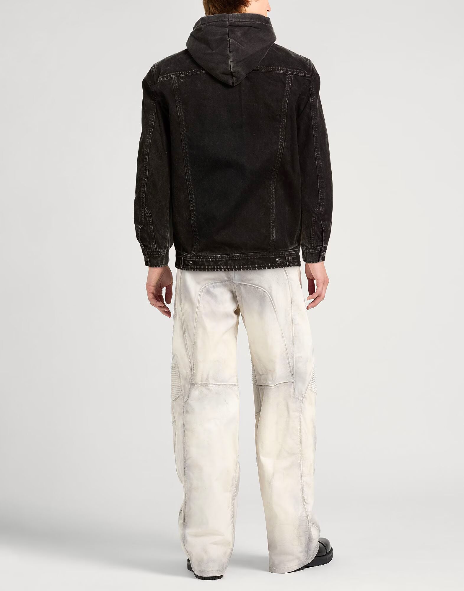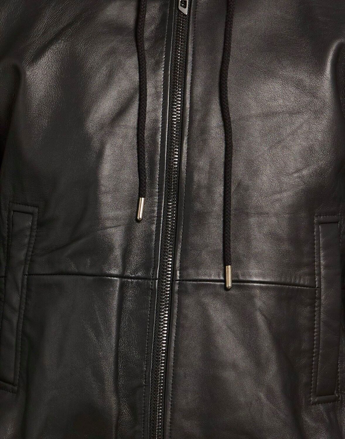 Повседневная куртка, кожа, джинсовая ткань, однотонная, без аппликаций, с капюшоном, длинные рукава, частично на подкладке, застежка-молния, прорезные карманы, содержит нетекстильные части животного происхождения, не стирать, не отбеливать, не сушить в сушильной машине, не гладить