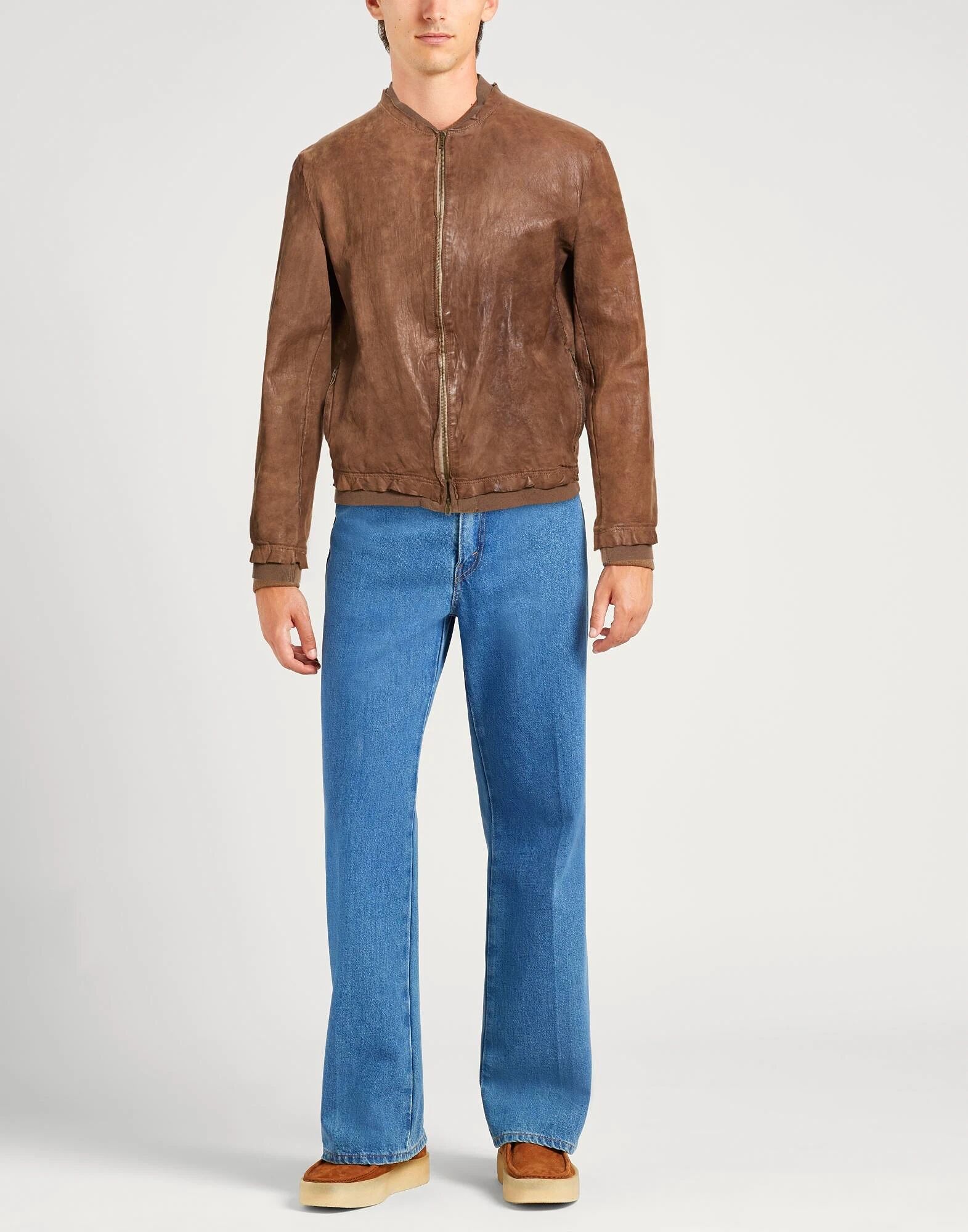 Куртка, кожа, однотонная, трикотажная отделка, однобортная, длинные рукава, без подкладки, застежка на молнию, карманы на молнии, содержит нетекстильные части животного происхождения, не стирать, не отбеливать, не сушить в сушильной машине, не гладить, эта марка маломерит