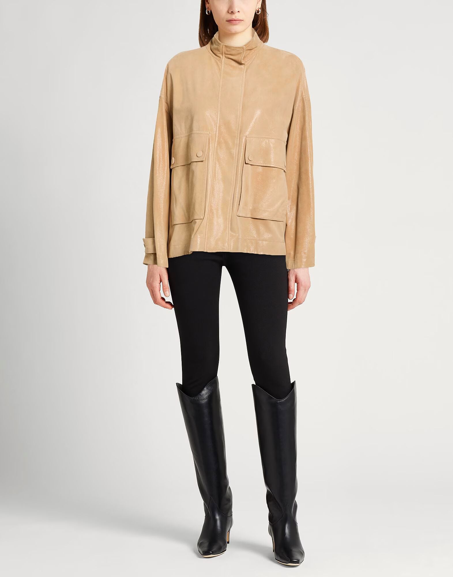 Куртка в стиле сафари, замша, однотонная, без аппликаций, длинные рукава, без подкладки, застежка на молнию, застежки на кнопки, карманы, содержит нетекстильные части животного происхождения, химчистка, не отбеливать, не сушить в сушильной машине