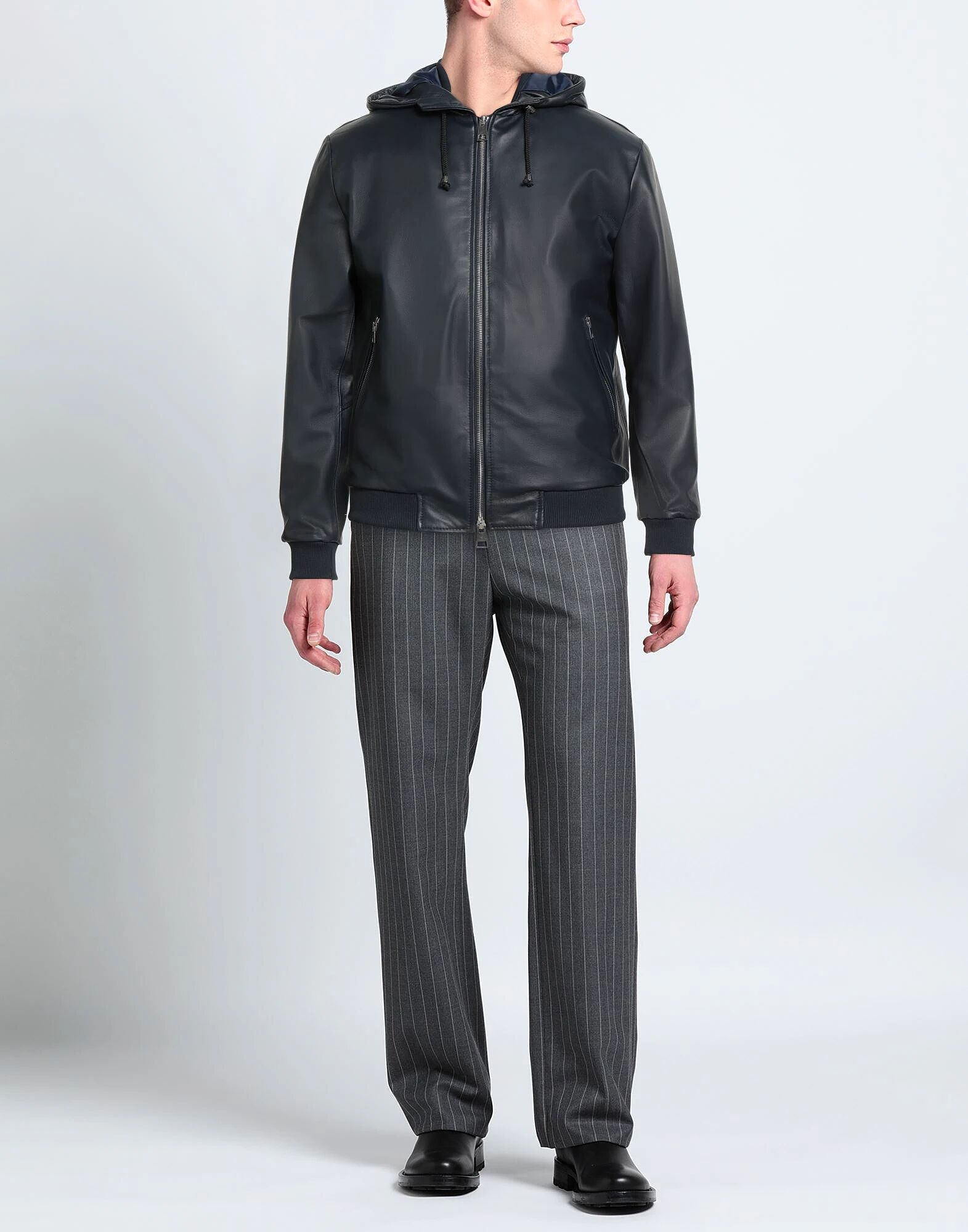 Повседневная куртка, кожа, без аппликаций, однотонная, с капюшоном, длинные рукава, ребристые манжеты, полностью на подкладке, застежка на молнию, карманы на молнии, содержит нетекстильные части животного происхождения, не стирать, не отбеливать, не сушить в сушильной машине, не гладить, эта марка маломерит