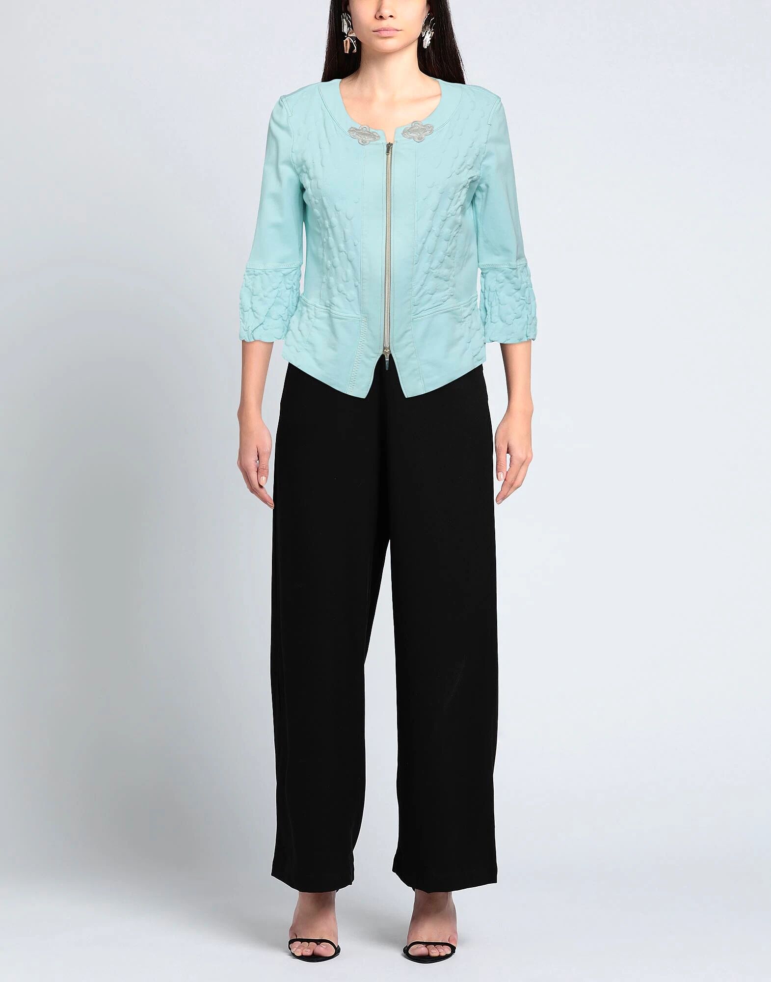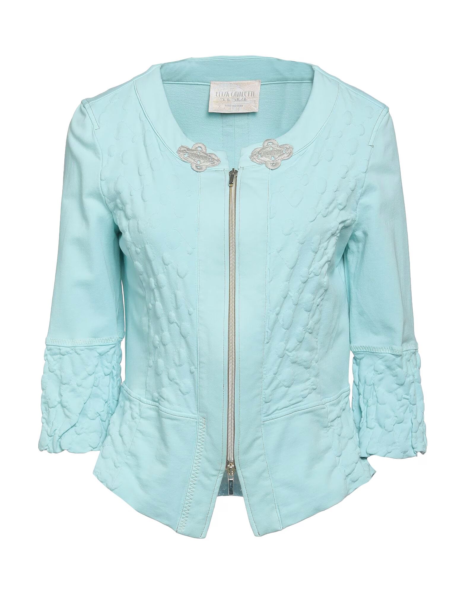 Куртка, трикотажная, однотонная, вышитая, круглый вырез, однобортная, рукава 3/4, на подкладке, застежка-молния, без карманов, эластичная, ручная стирка, не сушить в сушильной машине