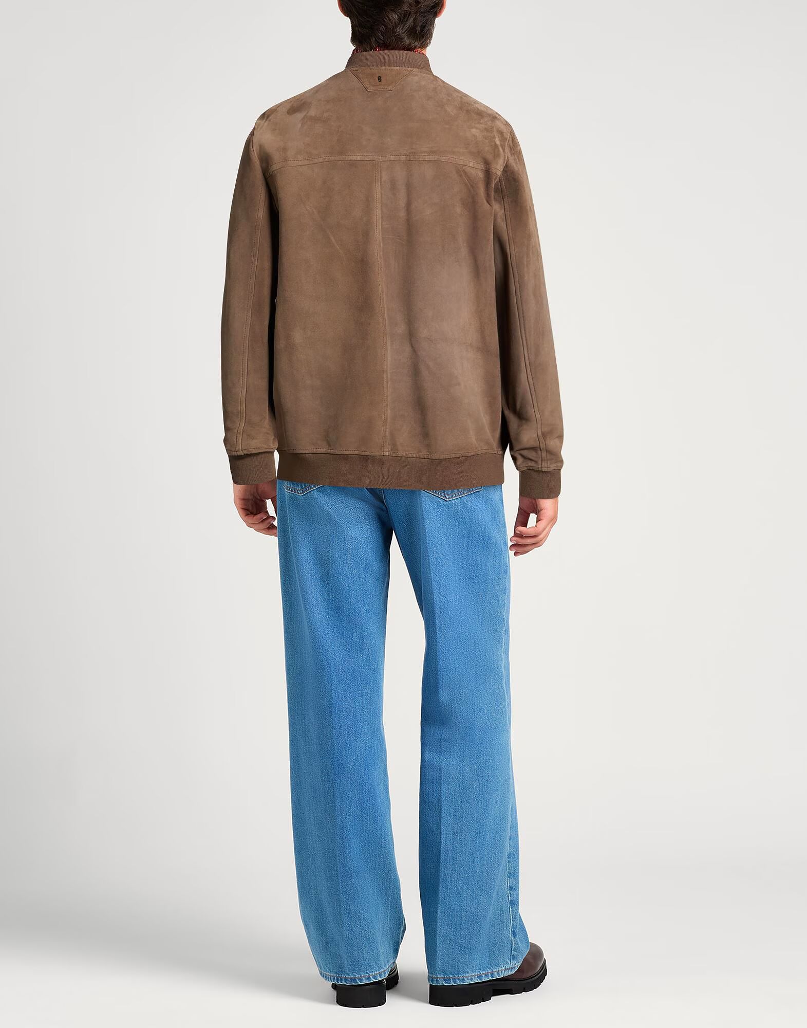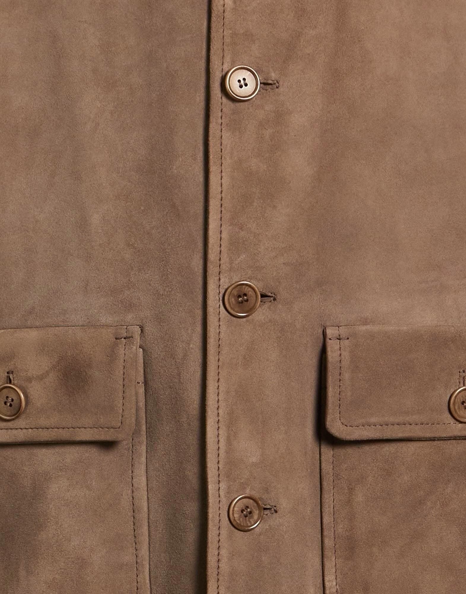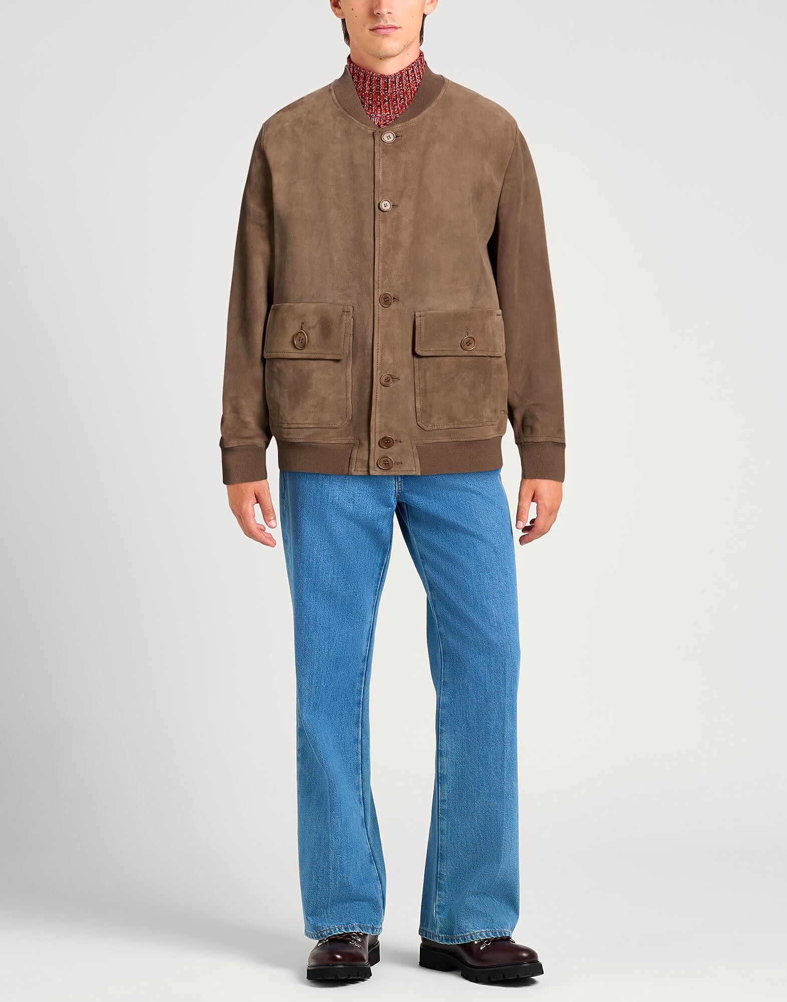 Повседневная куртка, замша, однотонная, логотип бренда, трикотажная отделка, длинные рукава, без подкладки, застежка на пуговицы, накладные карманы, содержит нетекстильные части животного происхождения, не стирать, не отбеливать, не сушить в сушильной машине, не гладить, размеры этой марки маломерят