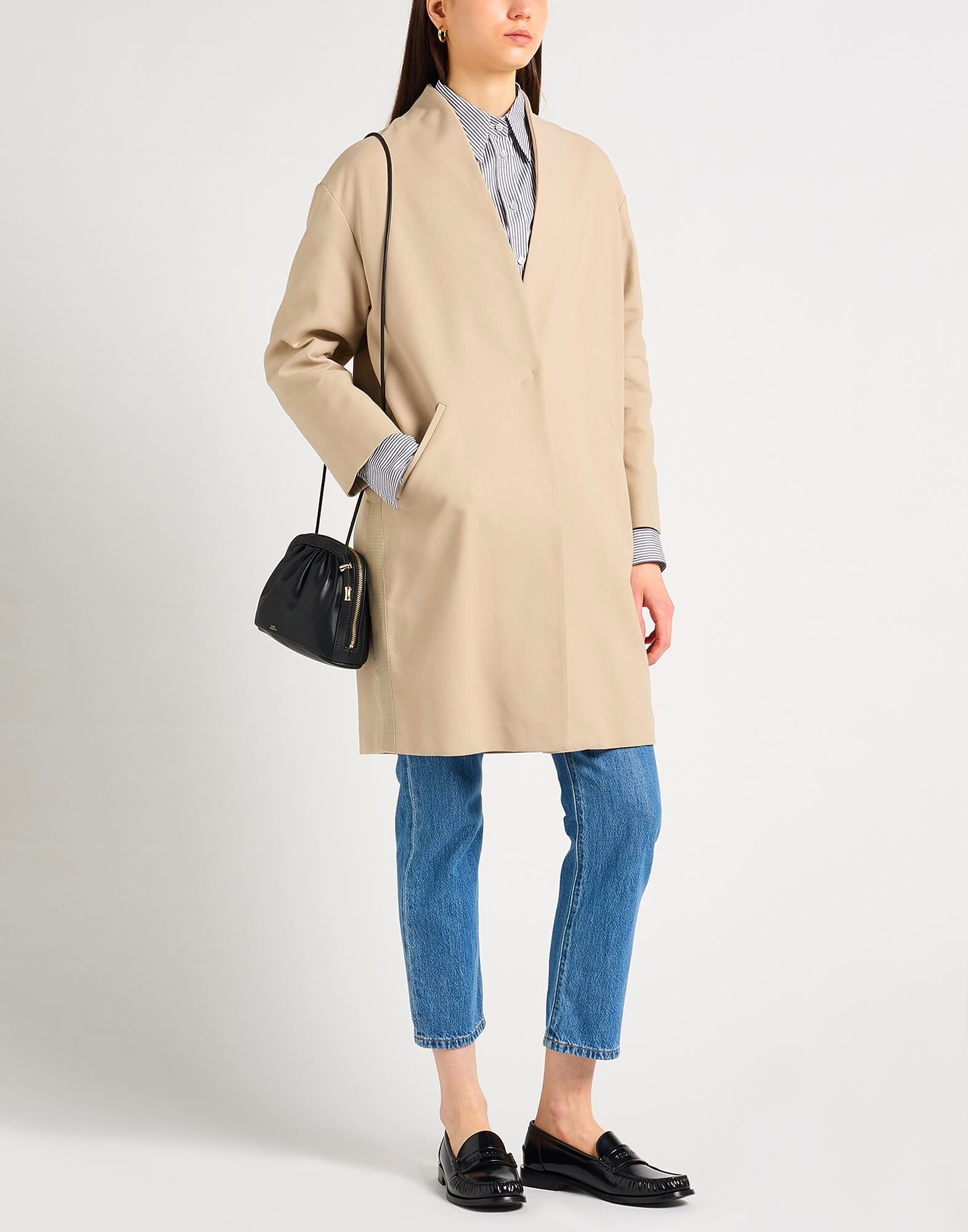 Габардин, без аппликаций, однотонный, V-образный вырез, однобортный, длинные рукава, на подкладке, застежка на кнопки, множество карманов, химчистка, не отбеливать, не сушить в сушильной машине, пальто