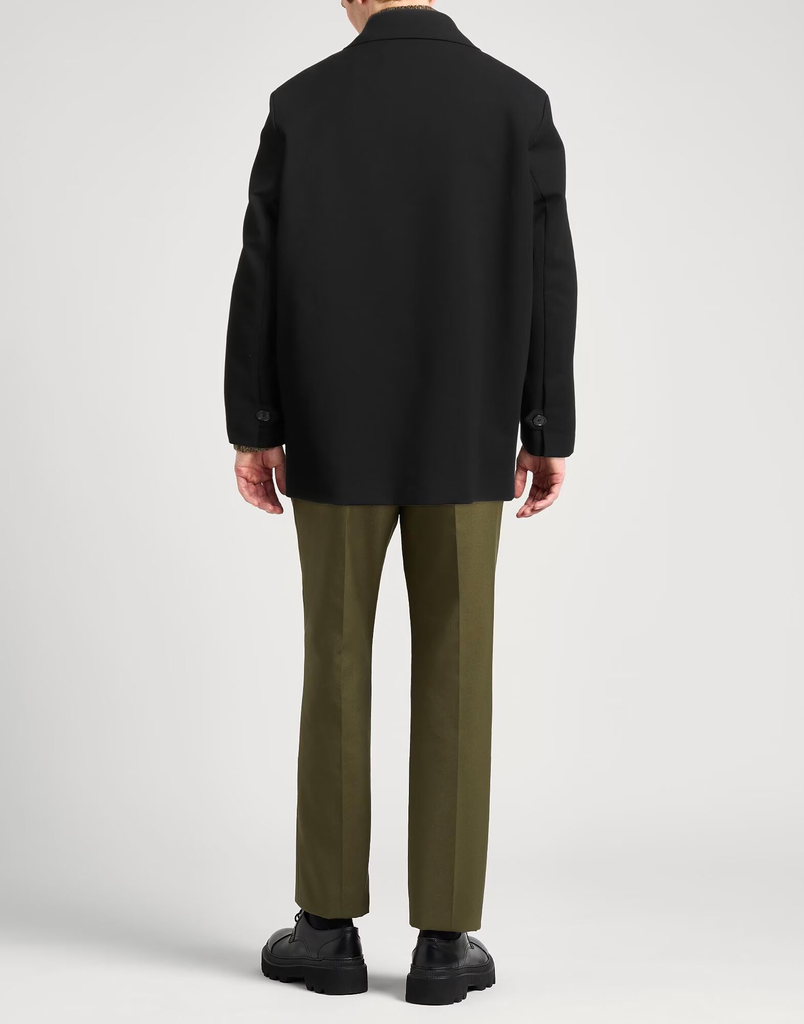 Пальто-бушлат, тканый, эластичный материал, брошь, однотонный цвет, воротник с лацканами, длинные рукава, манжеты на кнопках, синтетический наполнитель, легкий стеганый материал, прорезные карманы, химчистка, не отбеливать, не сушить в сушильной машине