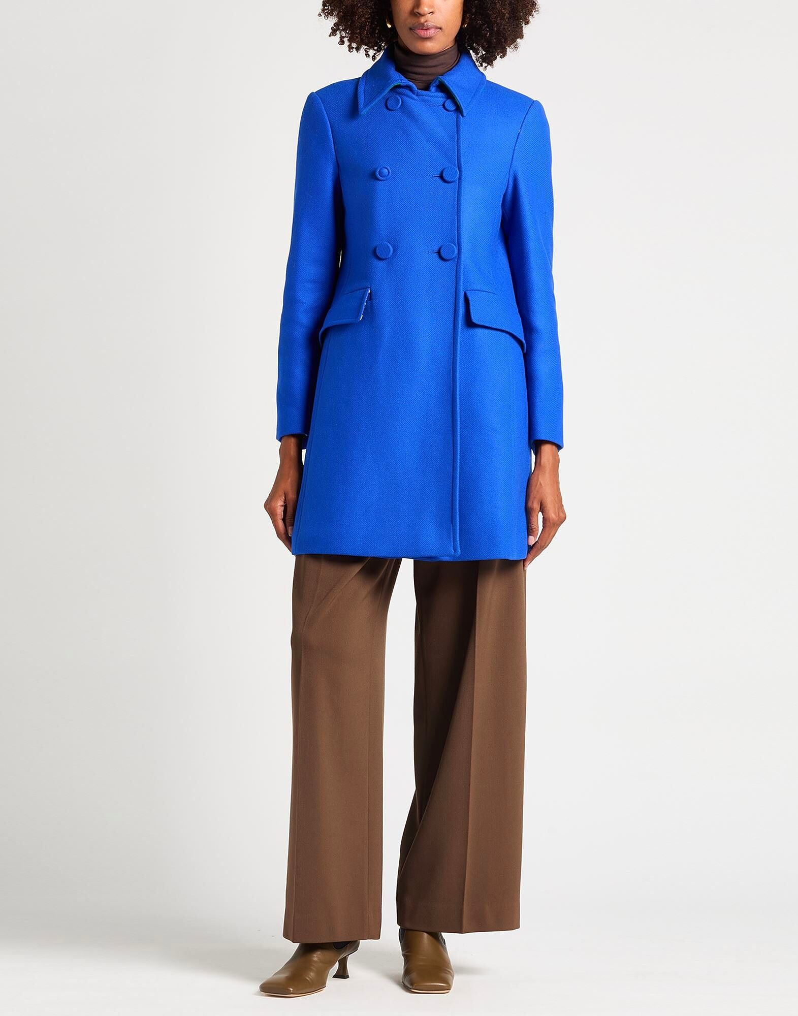 Двубортное пальто, фланель, без аппликаций, однотонное, классический воротник, длинные рукава, манжеты с разрезами, полностью на подкладке, застежка на пуговицы, накладные карманы, химчистка, не отбеливать, не сушить в сушильной машине Деловой стиль сочетается с элегантностью в этом шикарном офисном наряде, который будет вселять уверенность каждый день