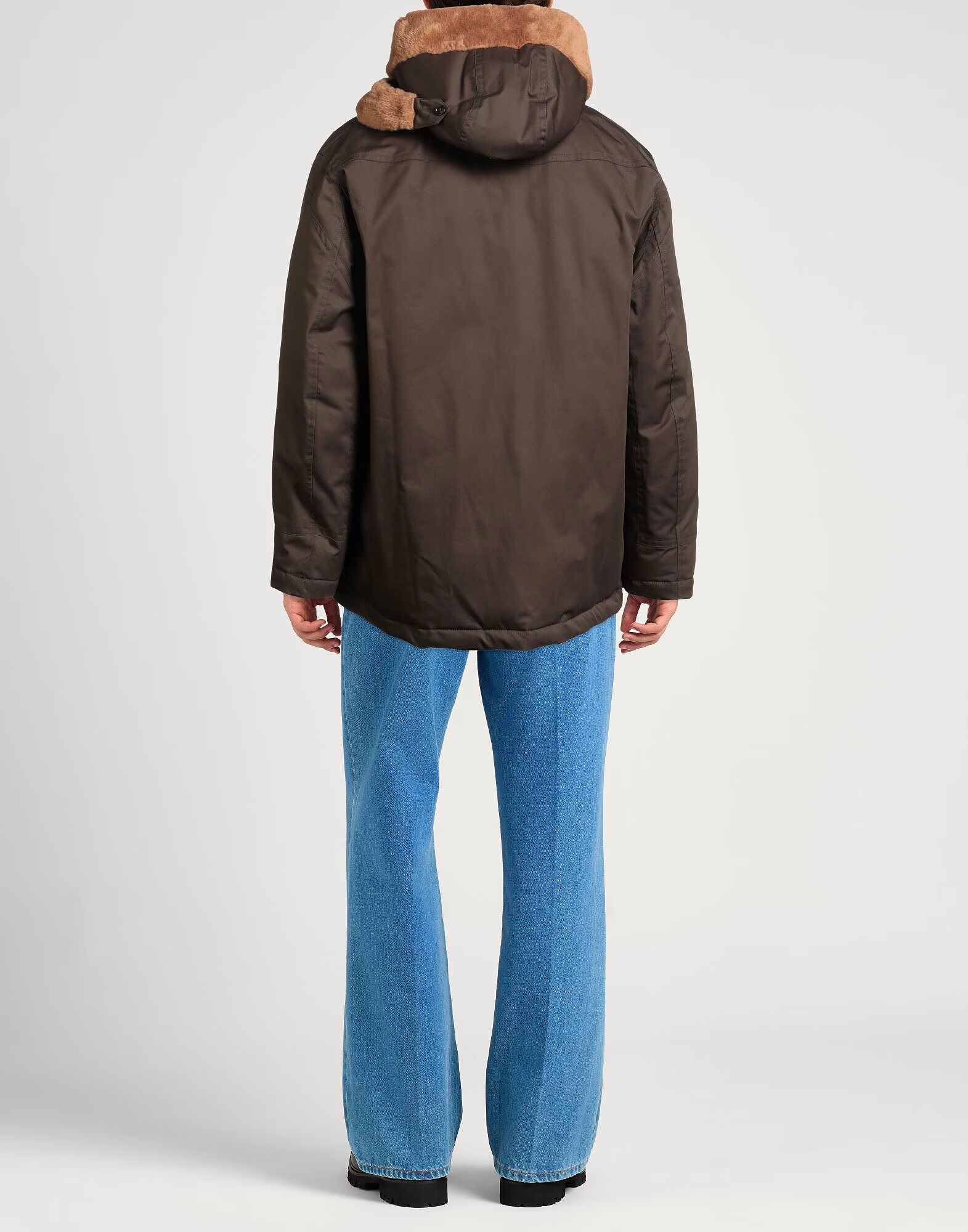 Парка, габардин, отделка из плюшевой ткани, однотонная, с капюшоном, длинные рукава, наполнитель из утиного пуха, плотный утеплитель, застежка на молнию, застежка на пуговицы, два нагрудных кармана, накладные карманы, низ на шнурке, содержит нетекстильные части животного происхождения, химчистка, не отбеливать, не сушить в сушильной машине, это изделие содержит пух или перья, полученные с ферм, где ценится благополучие животных