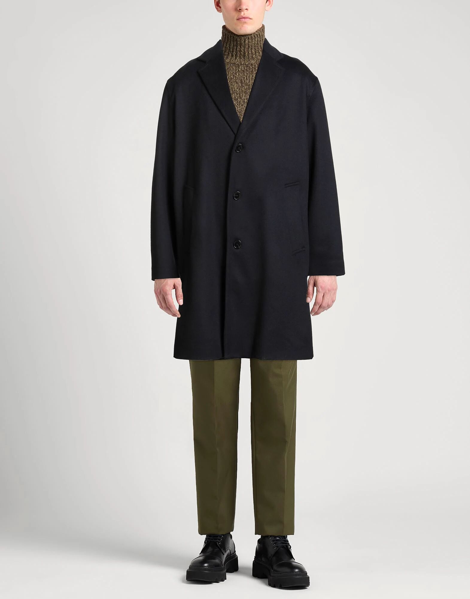 Однобортное пальто, из ворсистого фетра, без аппликаций, однотонное, с лацканами, длинными рукавами, на подкладке, застежка на пуговицы, прорезные карманы, разрез сзади, химчистка, не отбеливать, не сушить в сушильной машине, размеры этой марки маломерят