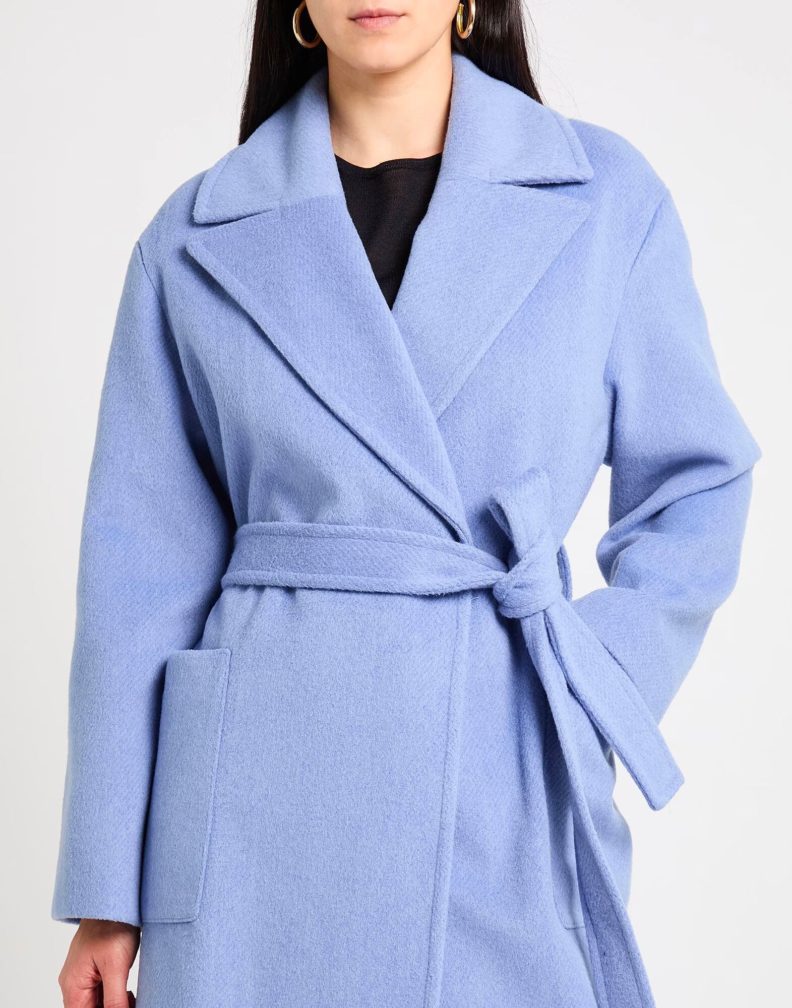Пальто с поясом, фетровая ткань, пояс, однотонное, воротник с лацканами, двубортное, длинные рукава, на подкладке, застежка на пуговицы, накладные карманы, химчистка, не отбеливать, не сушить в сушильной машине Деловой стиль сочетается с элегантностью в этом шикарном офисном наряде, который будет вселять уверенность каждый день