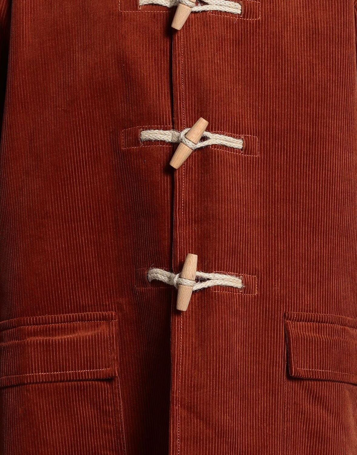Дафлкот, вельвет, ребристый, без аппликаций, однотонный, с капюшоном, однобортный, длинные рукава, на подкладке, завязки, много карманов, эластичный