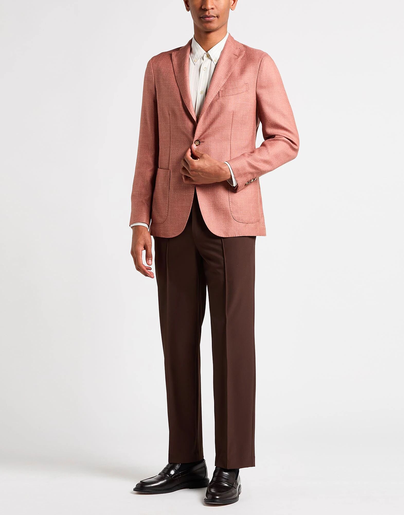 Однобортный блейзер, прохладная шерсть, однотонный, без аппликаций, воротник с лацканами, длинные рукава, без подкладки, застежка на пуговицы, один нагрудный карман, накладной карман, химчистка, не отбеливать, не сушить в сушильной машине Создайте свой идеальный образ с этим дизайнерским блейзером, подходящим для деловых встреч или особых случаев