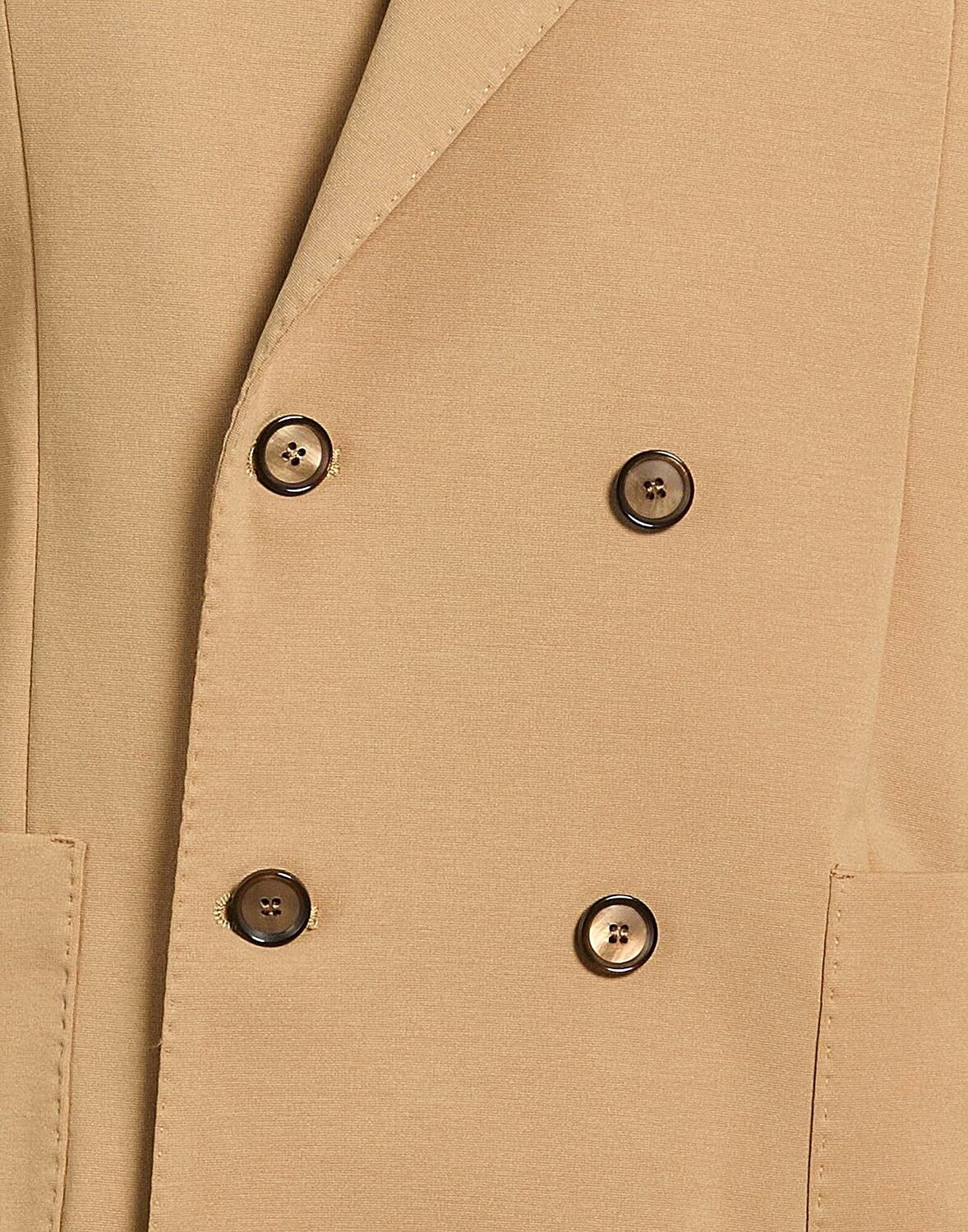 Двубортный блейзер, тканый, эластичный материал, однотонный, без аппликаций, воротник с лацканами, длинные рукава, частично на подкладке, застежка на пуговицы, карманы, два разреза сзади, ручная стирка или химчистка, не отбеливать, не сушить в сушильной машине
