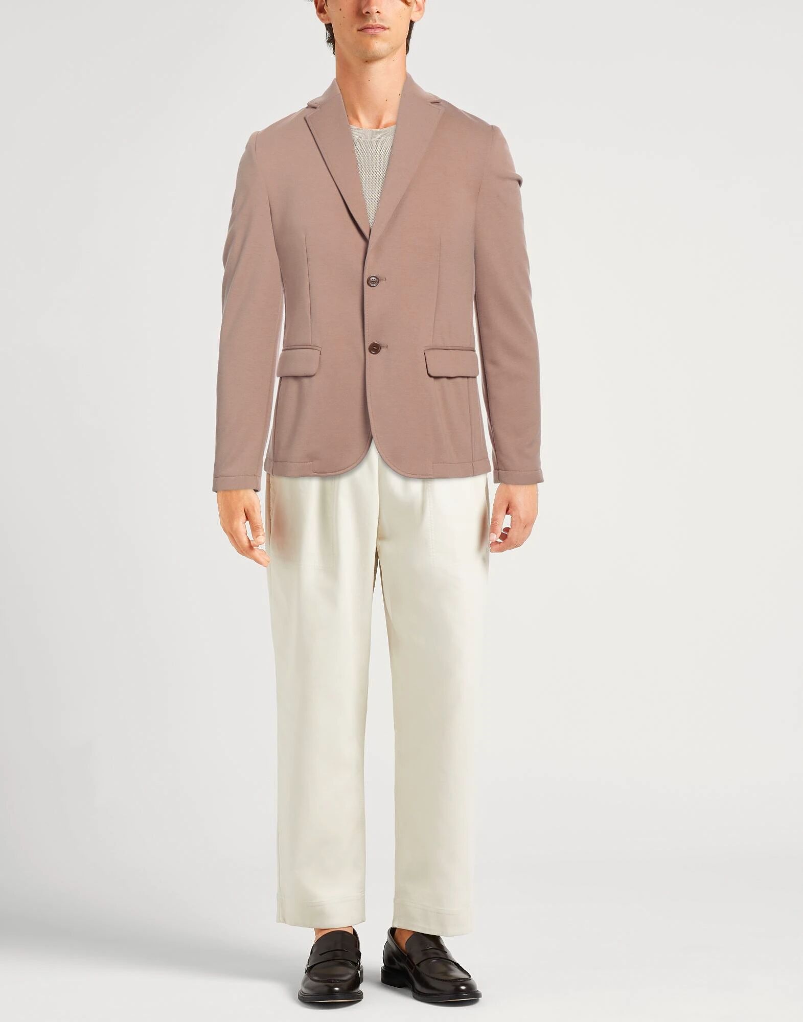 Однобортный блейзер, трикотаж, эластичная ткань, однотонный, без аппликаций, воротник с лацканами, длинные рукава, частично на подкладке, 1 пуговица, накладные карманы, два разреза сзади, химчистка, не отбеливать, не сушить в сушильной машине