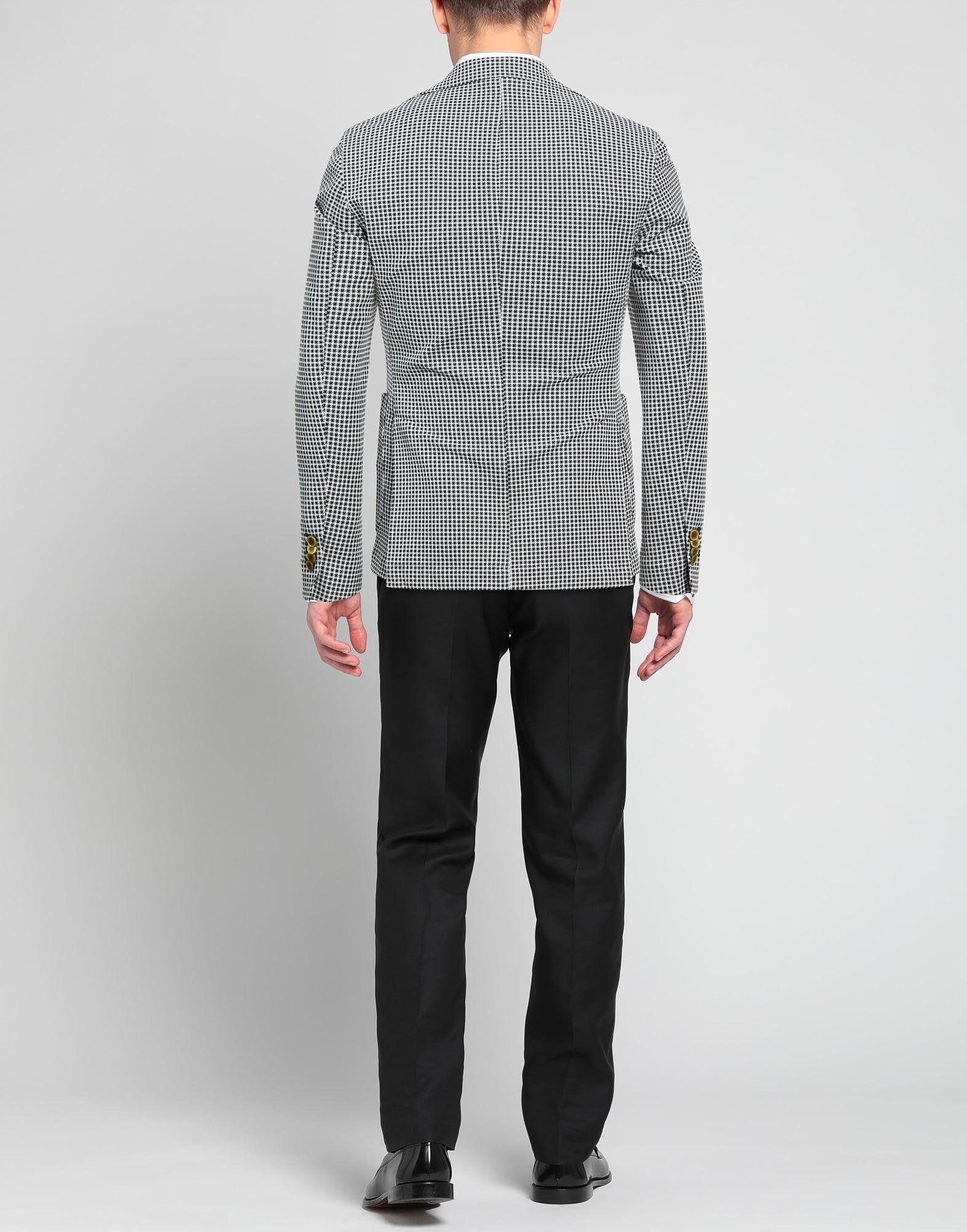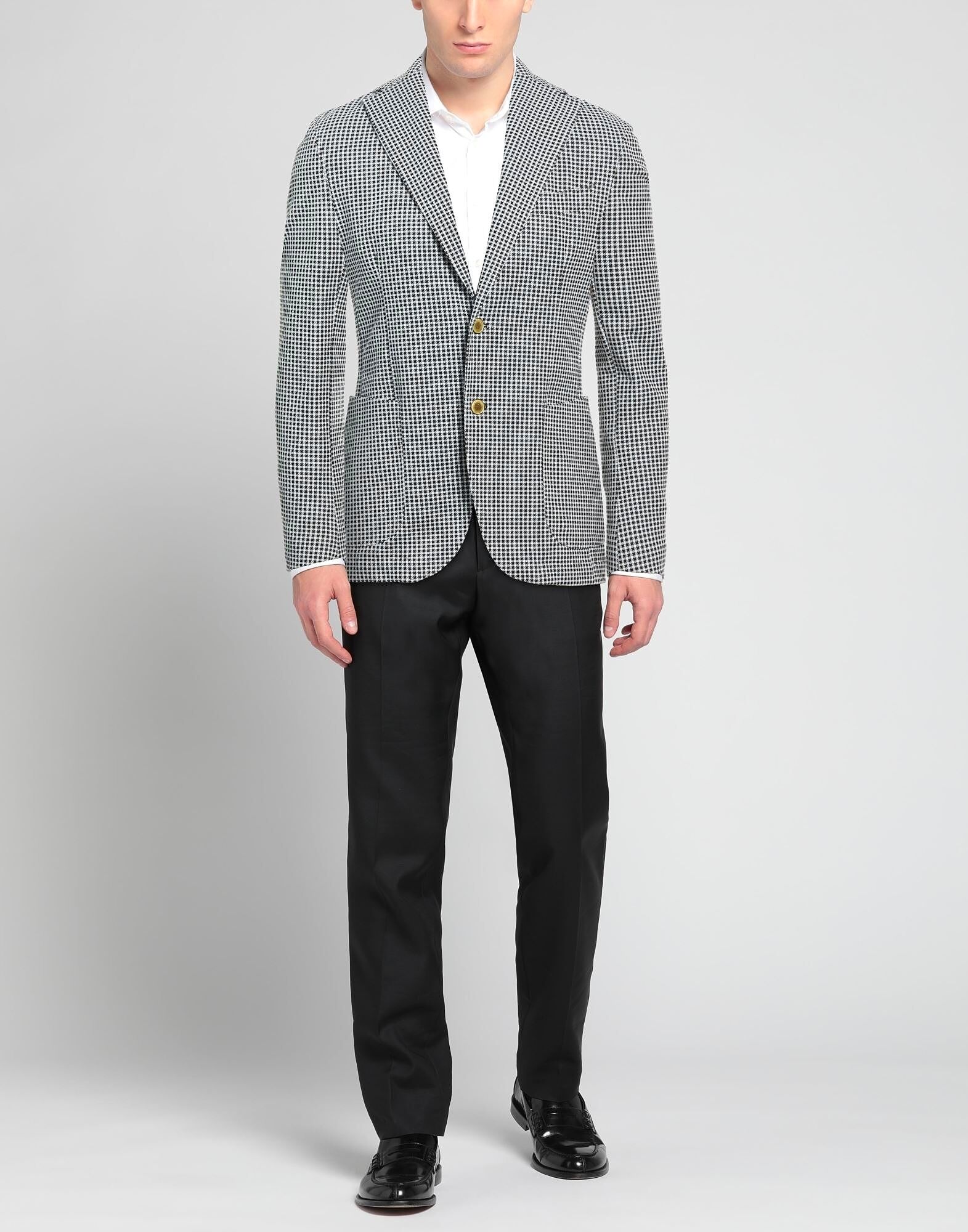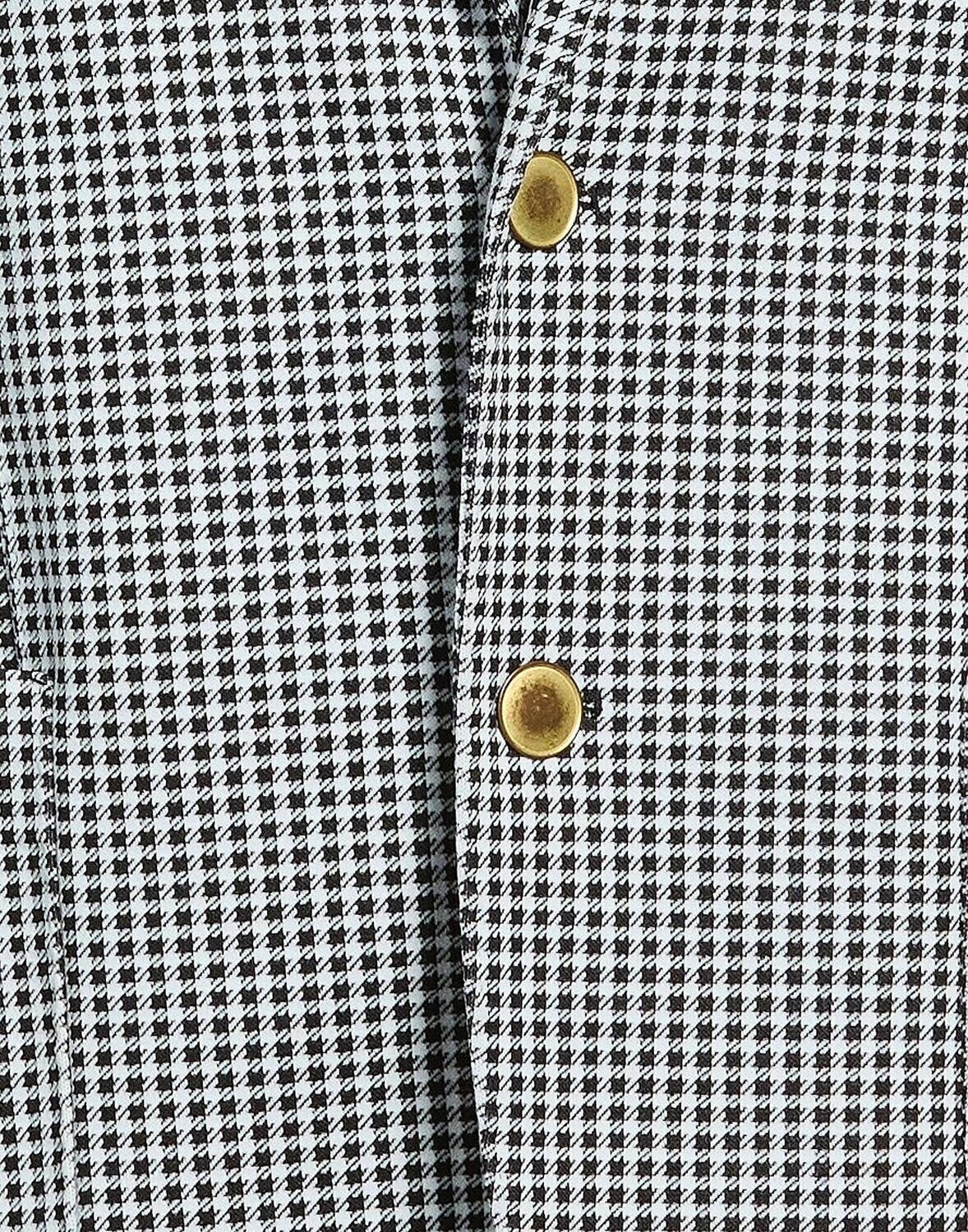 Однобортный блейзер, жаккард, эластичная ткань, клетка «гусиная лапка», без аппликаций, воротник с лацканами, длинные рукава, манжеты на пуговицах, частичная подкладка, застежка на пуговицы, накладные карманы, один нагрудный карман, две разреза сзади, ручная стирка или химчистка, не отбеливать, не сушить в сушильной машине Создайте идеальный образ с этим дизайнерским блейзером, подходящим для деловых встреч или особых случаев