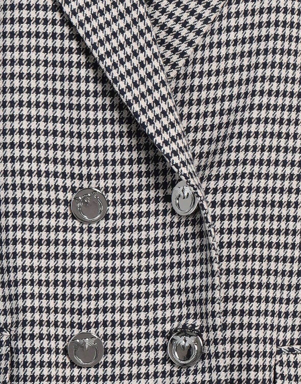 Тканый, без аппликаций, «гусиная лапка», воротник с лацканами, двубортный, длинные рукава, частично на подкладке, застежка на пуговицы, без карманов, двубортный жакет