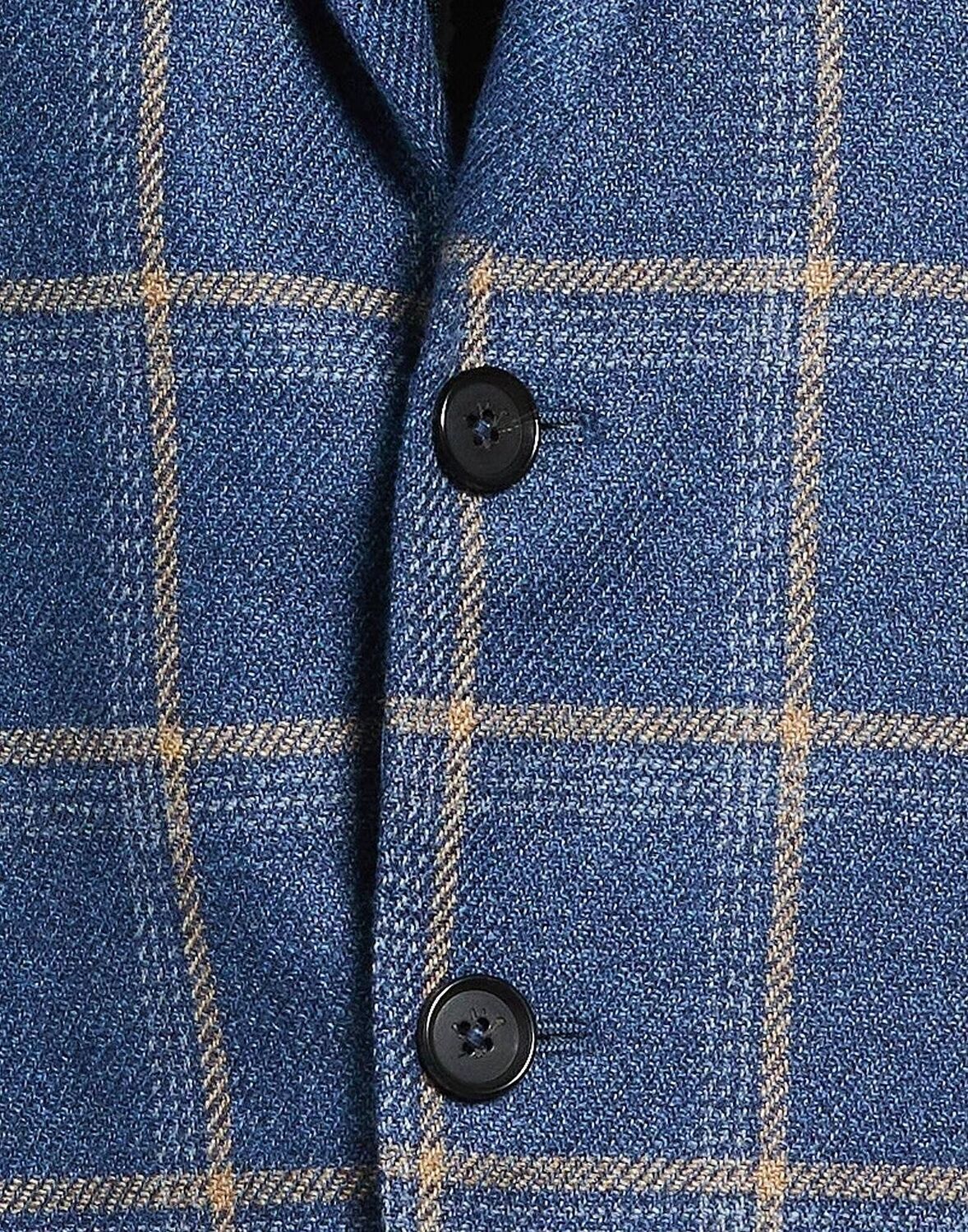 Однобортный блейзер, холодная шерсть, клетка, брошь, воротник с лацканами, длинные рукава, частичная подкладка, застежка на пуговицы, накладные карманы, внутренние карманы, две разреза сзади, химчистка, не отбеливать, не сушить в сушильной машине