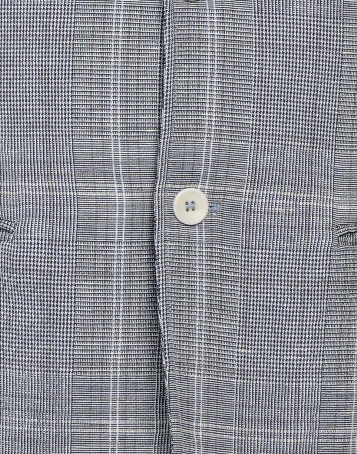 Тканый, без аппликаций, клетчатый узор «глен плейд», воротник с лацканами, однобортный, длинные рукава, 2 пуговицы, множество карманов, два разреза сзади, эластичный, однобортный блейзер