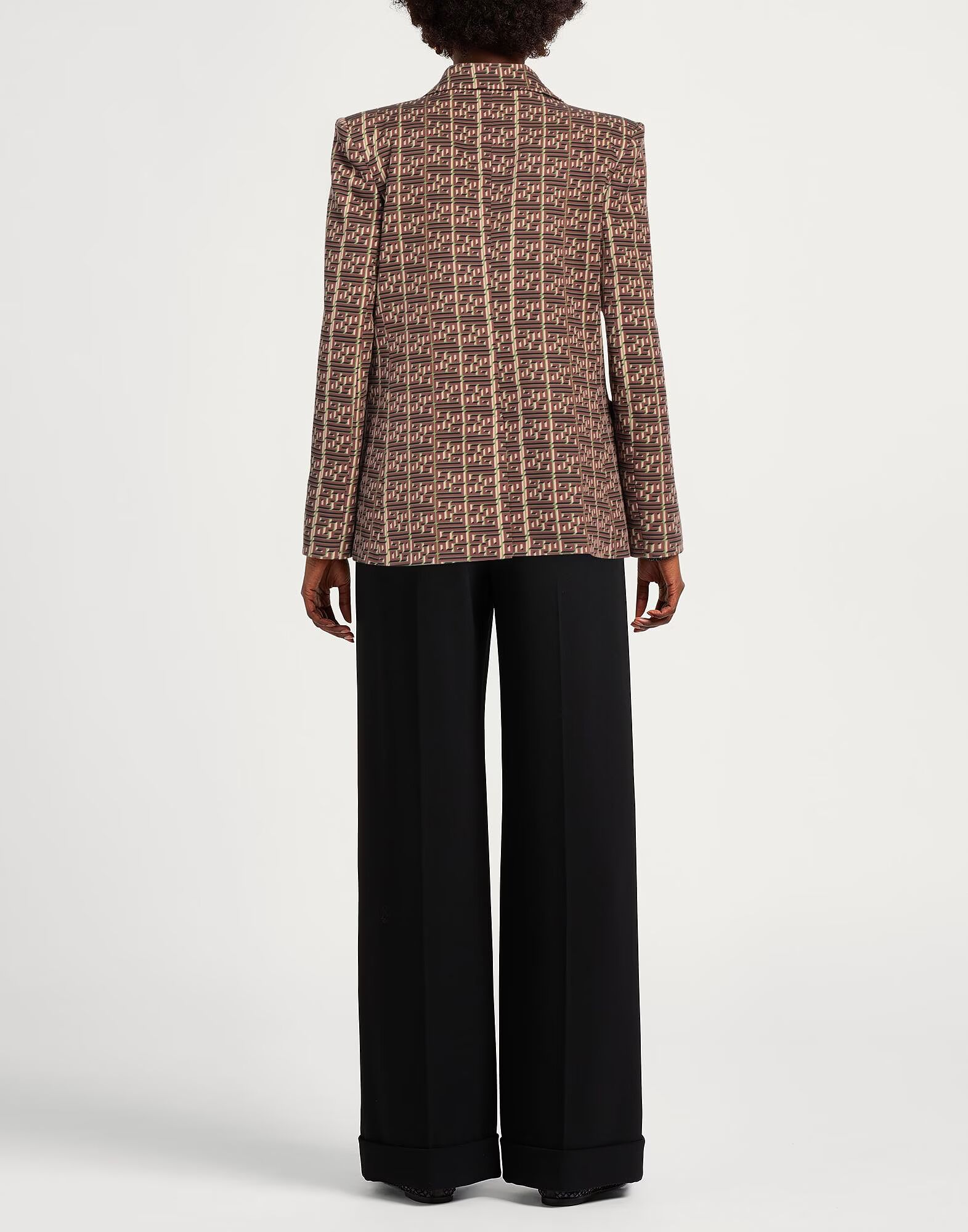 Однобортный блейзер, креп, многоцветный, без аппликаций, воротник с лацканами, длинные рукава, полностью на подкладке, застежка на пуговицы, накладные карманы, разрез сзади, эластичный, ручная стирка, не отбеливать, не сушить в сушильной машине