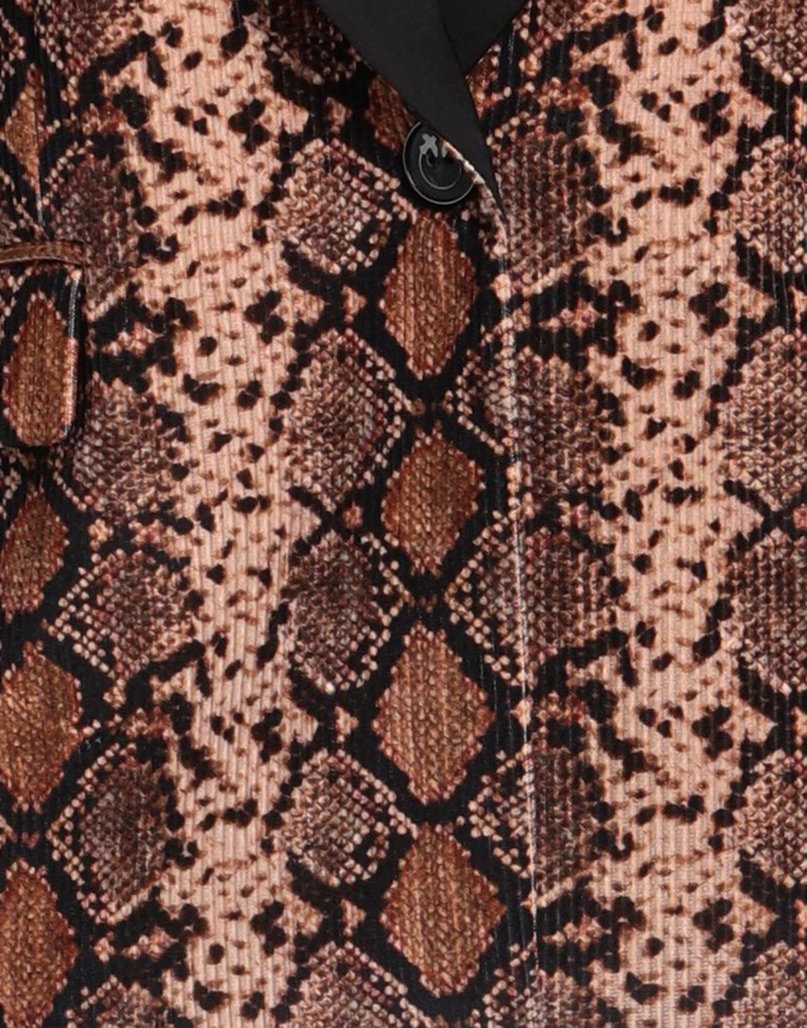 Однобортный блейзер, вельвет, твил, змеиный принт, без аппликаций, воротник с лацканами, длинные рукава, манжеты на пуговицах, полностью на подкладке, застежка на пуговицы, один нагрудный карман, накладные карманы, химчистка, не отбеливать, не сушить в сушильной машине