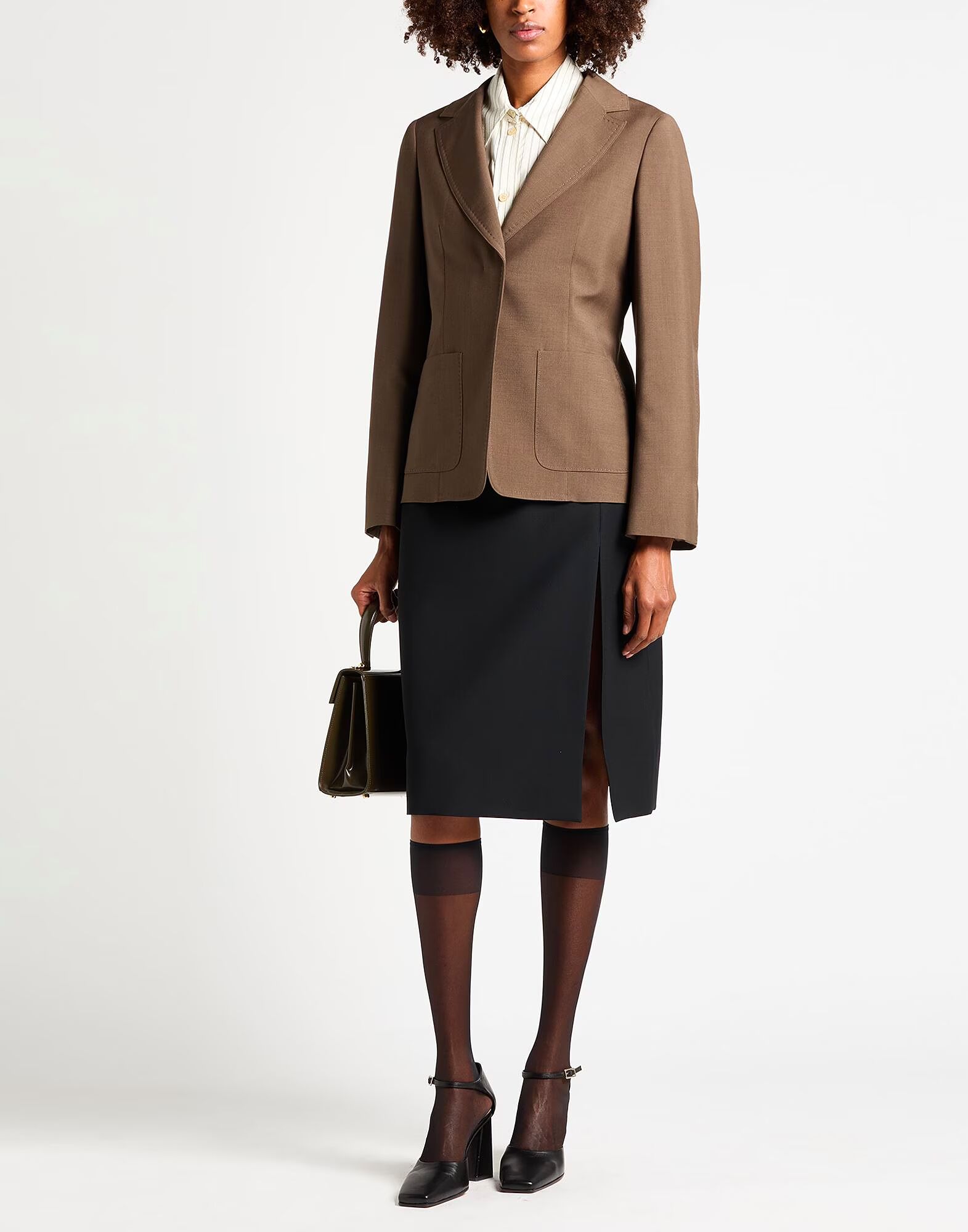 Однобортный блейзер, прохладная шерсть, однотонный, вышитый логотип, воротник с лацканами, длинные рукава, манжеты с разрезами, полностью на подкладке, 1 пуговица, прорезные карманы, химчистка, не отбеливать, не сушить в сушильной машине Деловой стиль сочетается с элегантностью в этом шикарном офисном наряде, который будет вселять уверенность каждый день
