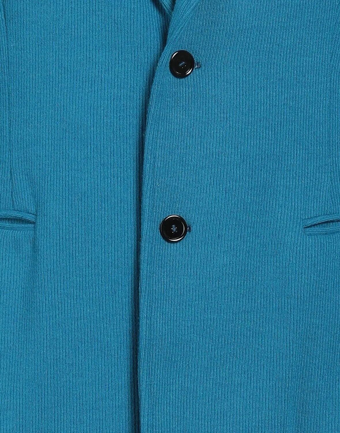Вязаный, средней плотности, без аппликаций, однотонный, с лацканами, длинные рукава, частично на подкладке, застежка на пуговицы, множество карманов, внутренние карманы, две разреза сзади, химчистка, не отбеливать, не сушить в сушильной машине, однобортный блейзер