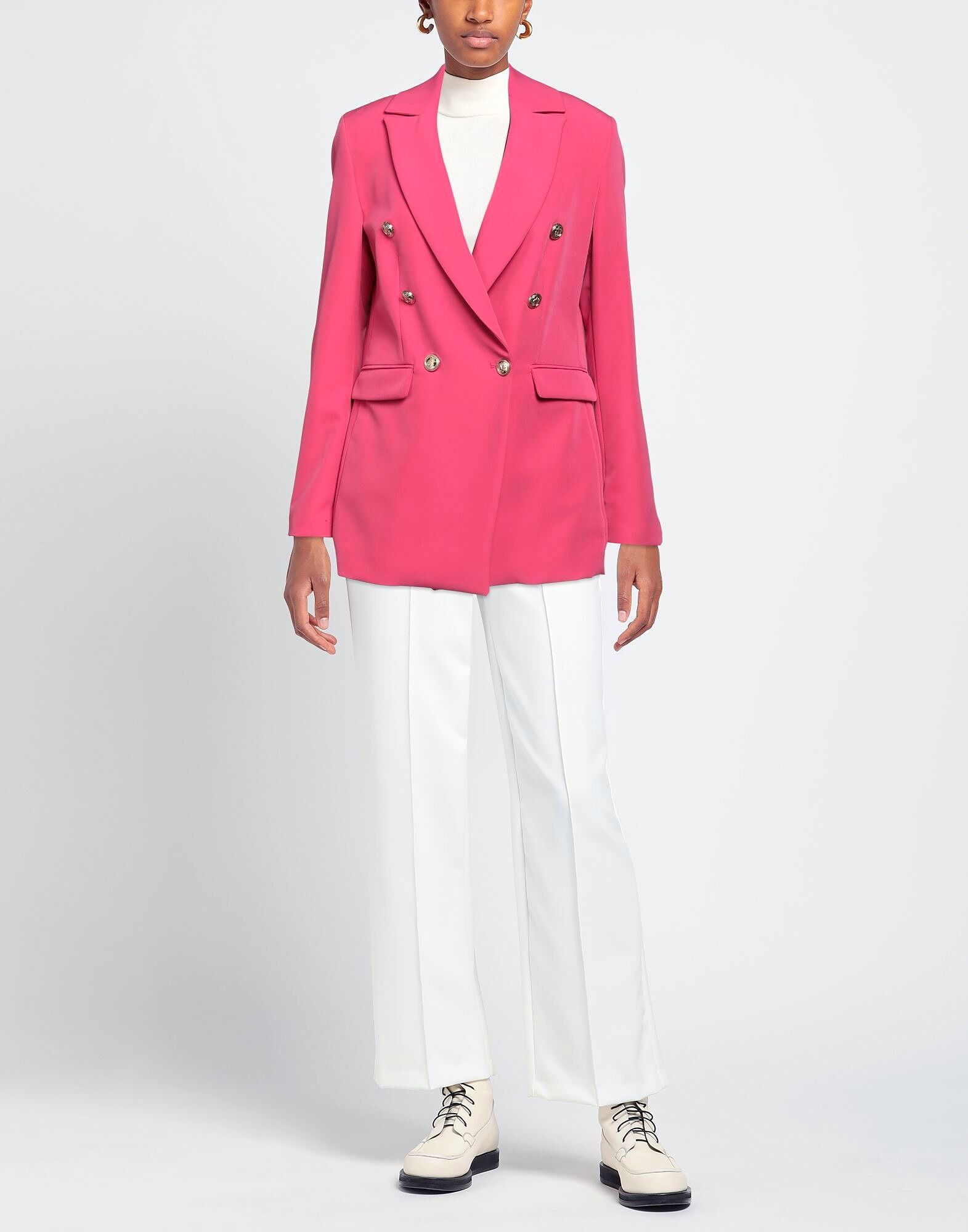 Тканый, с открытой спинкой, однотонный, с лацканами, двубортный, длинные рукава, манжеты на пуговицах, полностью на подкладке, застежка на пуговицы, множество карманов, карман с клапаном, эластичный, двубортный жакет