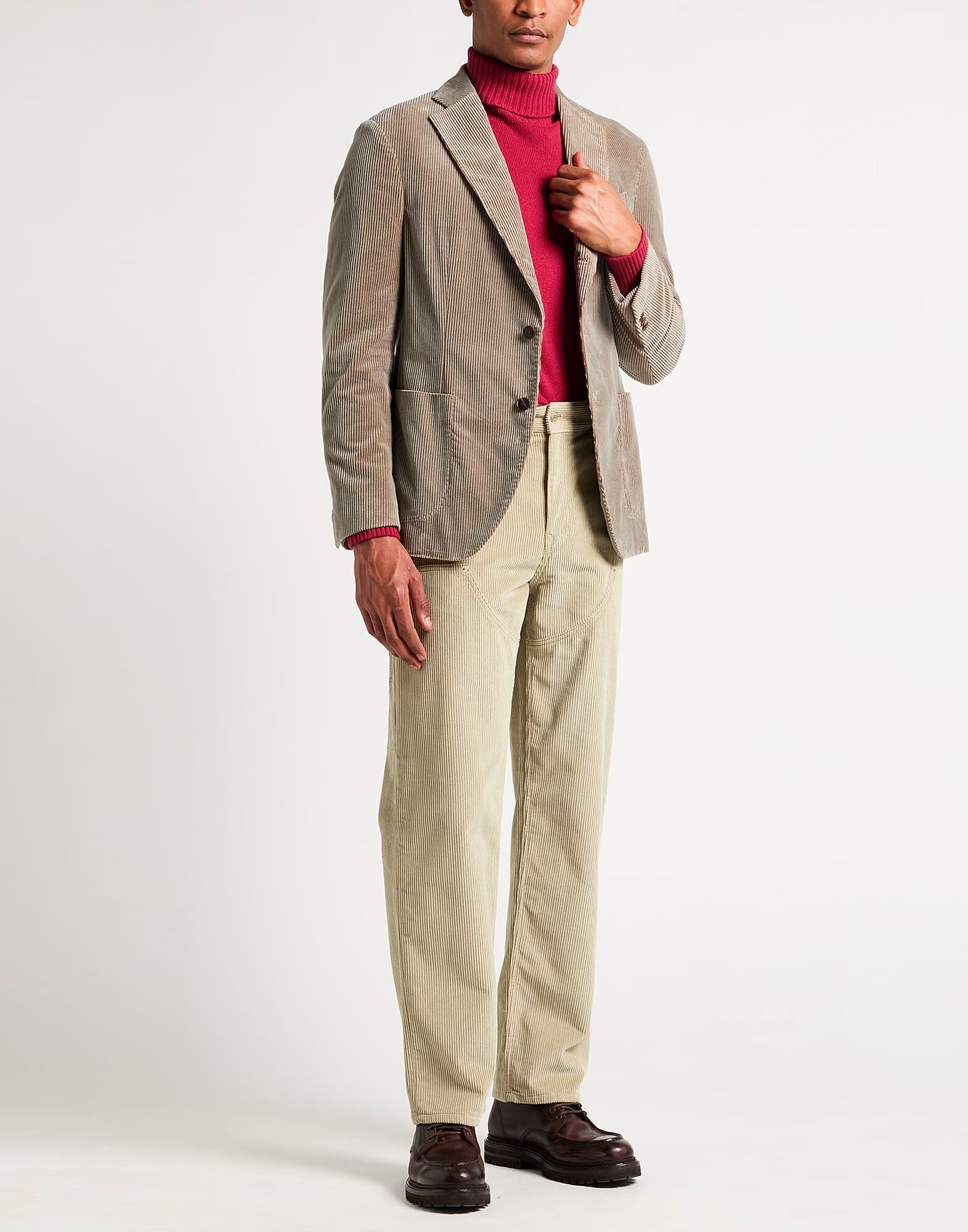 Однобортный блейзер, вельвет, однотонный, без аппликаций, воротник с лацканами, длинные рукава, частично на подкладке, застежка на пуговицы, один нагрудный карман, накладные карманы, две разреза сзади, химчистка, не отбеливать, не сушить в сушильной машине
