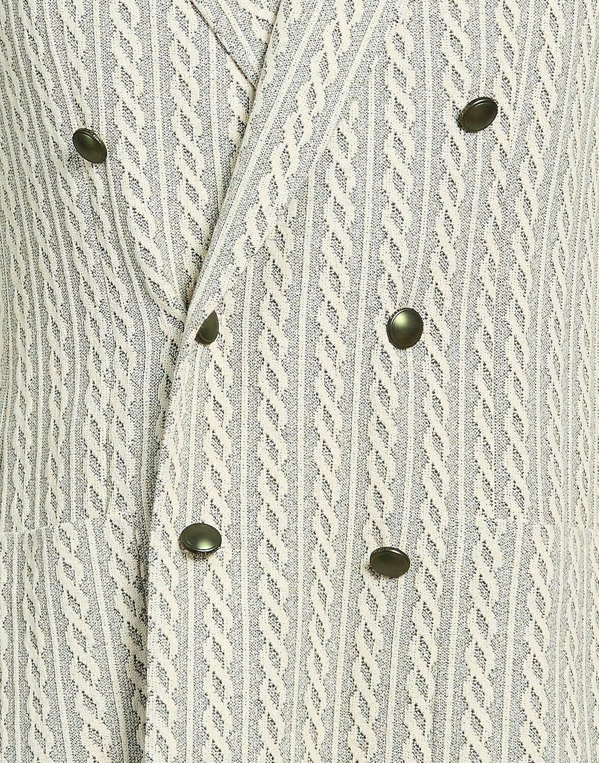 Двубортный блейзер, жаккард, двухцветный, брошь, воротник с лацканами, длинные рукава, без подкладки, застежка на пуговицы, накладные карманы, химчистка, не отбеливать, не сушить в сушильной машине