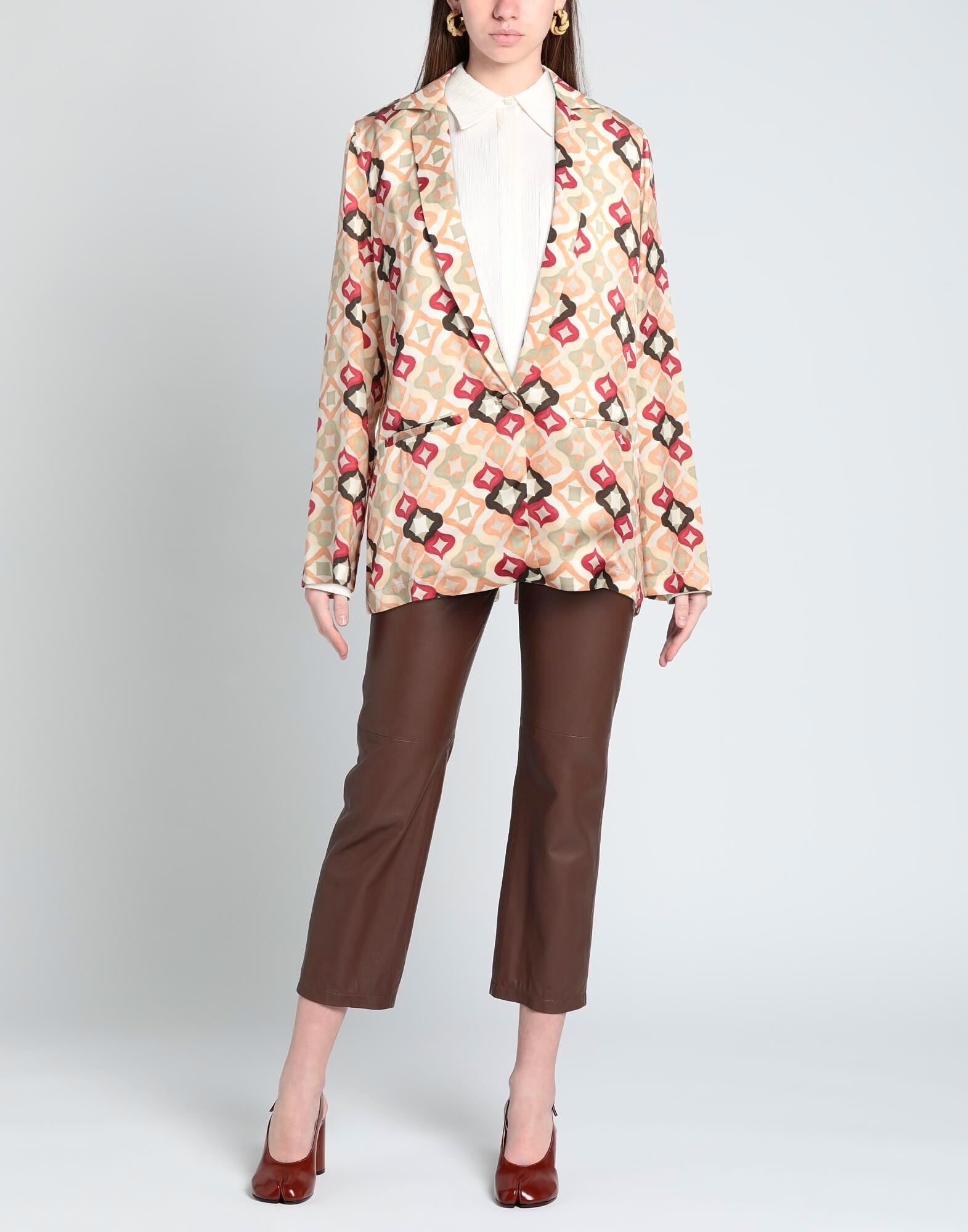 Атлас, без аппликаций, многоцветный узор, воротник с лацканами, однобортный, длинные рукава, без подкладки, 1 пуговица, несколько карманов, однобортный жакет