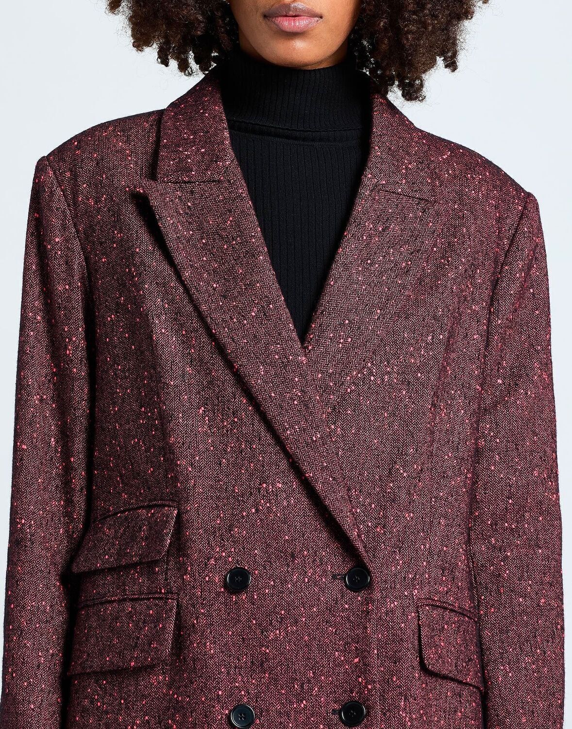 Двубортный блейзер, фланель, ёлочка, без аппликаций, воротник с лацканами, длинные рукава, полностью на подкладке, застежка на пуговицы, накладные карманы, химчистка, не отбеливать, не сушить в сушильной машине Деловой стиль сочетается с элегантностью в этом шикарном офисном наряде, который будет вселять уверенность каждый день