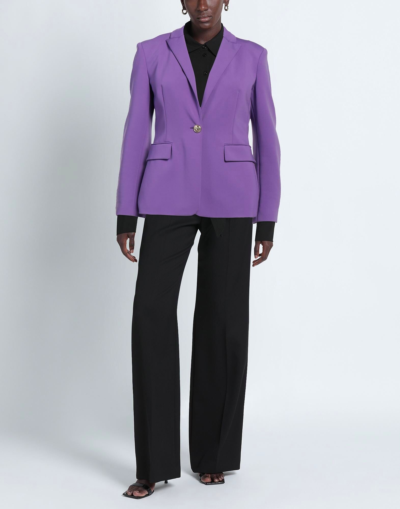 Однобортный блейзер, тканый, эластичный материал, однотонный, без аппликаций, воротник с лацканами, длинные рукава, подплечники, манжеты на пуговицах, полностью на подкладке, 1 пуговица, накладные карманы, химчистка, не отбеливать, не сушить в сушильной машине