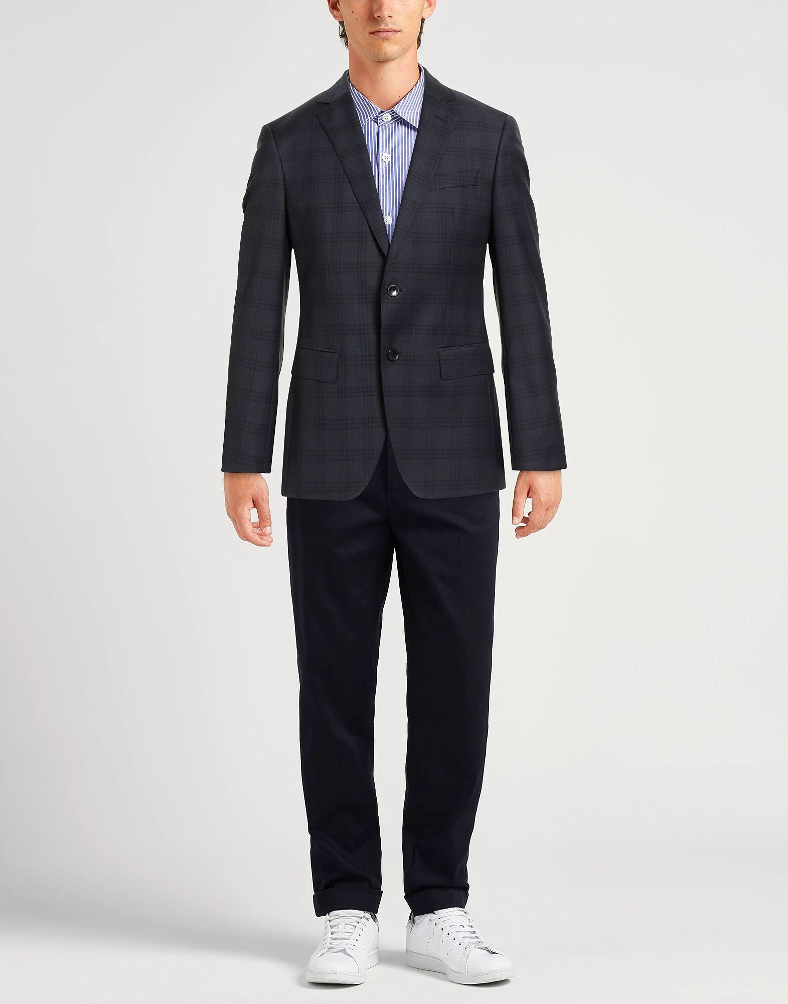 Однобортный блейзер, тканый, в клетку, без аппликаций, с лацканами, длинными рукавами, на подкладке, застежка на пуговицы, множество карманов, два разреза сзади, химчистка, не отбеливать, не сушить в сушильной машине