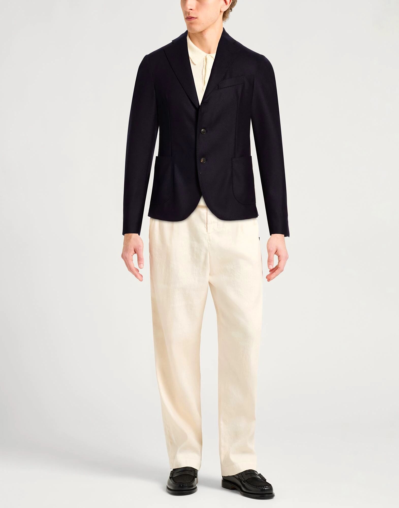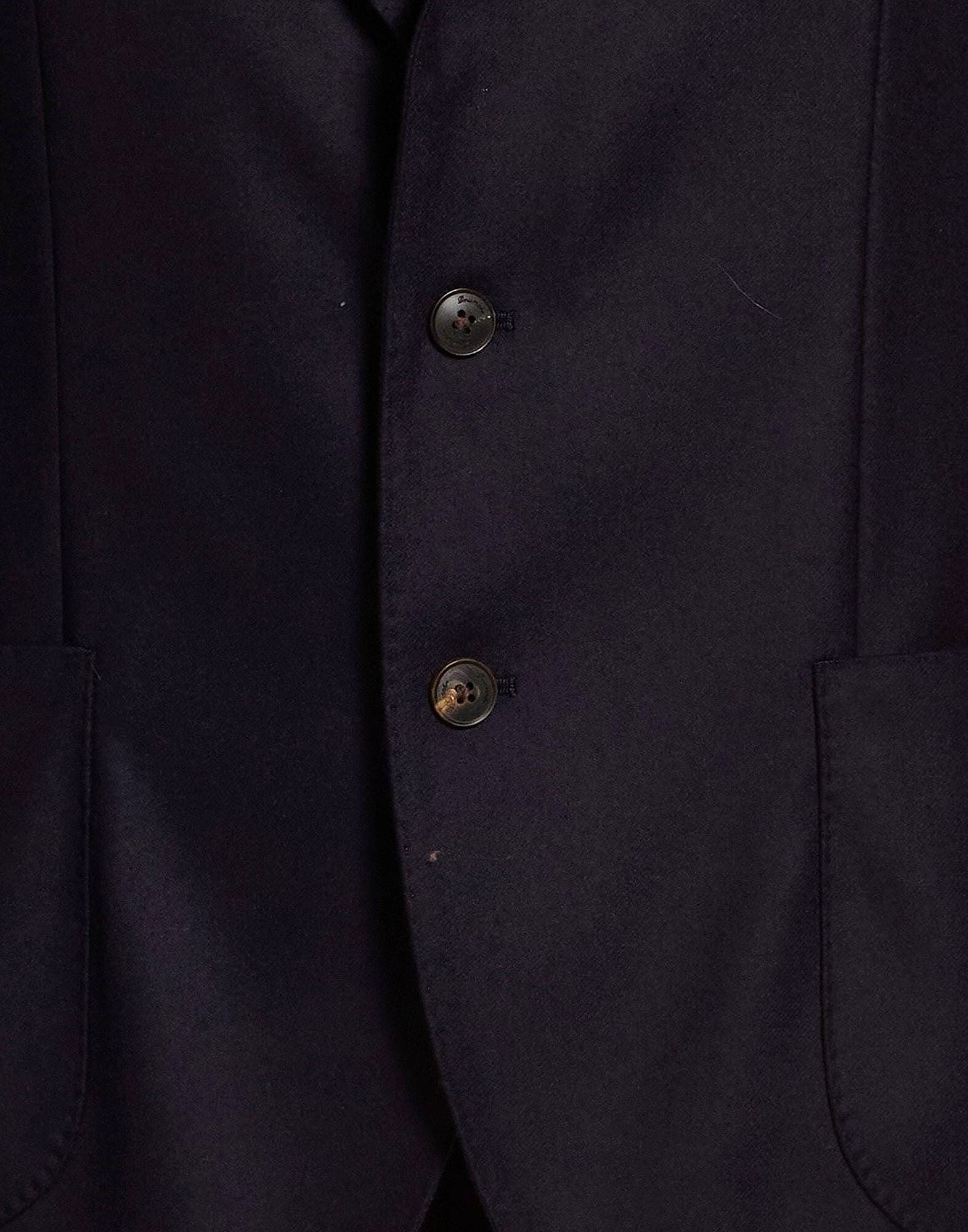 Однобортный блейзер, прохладная шерсть, однотонный, без аппликаций, воротник с лацканами, длинные рукава, частичная подкладка, застежка на пуговицы, накладные карманы, внутренние карманы, две разреза сзади, химчистка, не отбеливать, не сушить в сушильной машине Создайте свой идеальный образ с этим дизайнерским блейзером, подходящим для деловых встреч или особых случаев