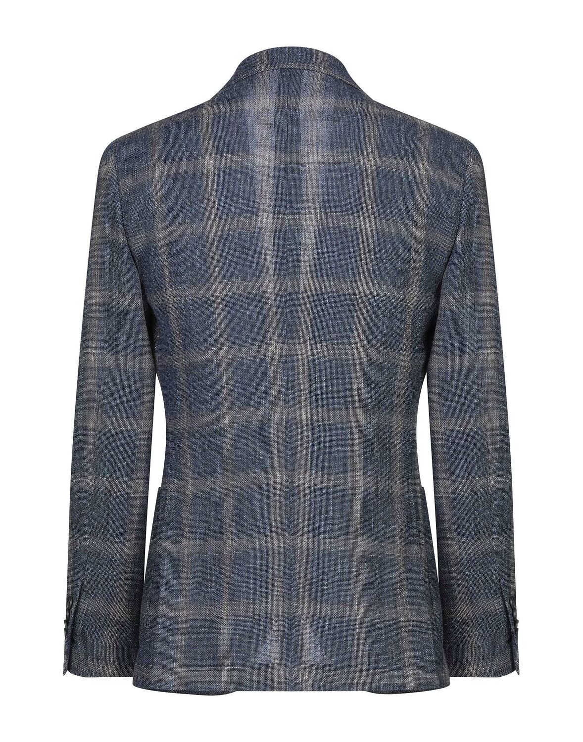 Прохладная шерсть, вытачки, клетка, множество карманов, один нагрудный карман, внутренние карманы, 2 пуговицы, воротник с лацканами, однобортный, длинные рукава, полуподкладка, две разреза сзади