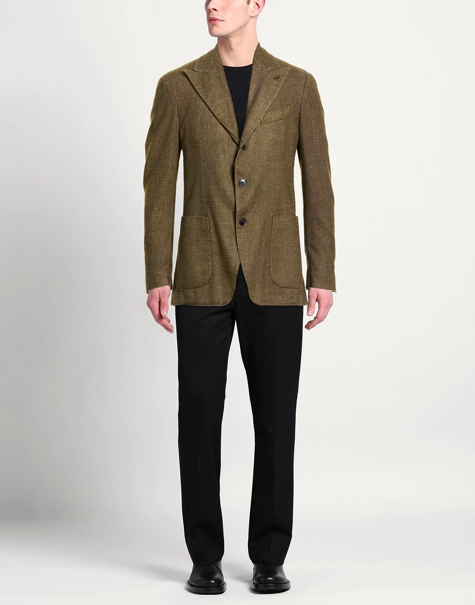 Однобортный блейзер, фланель, однотонный, без аппликаций, воротник с лацканами, длинные рукава, частичная подкладка, застежка на пуговицы, накладные карманы, один нагрудный карман, две разреза сзади, химчистка, не отбеливать, не сушить в сушильной машине Создайте свой идеальный образ с этим дизайнерским блейзером, подходящим для деловых встреч или особых случаев