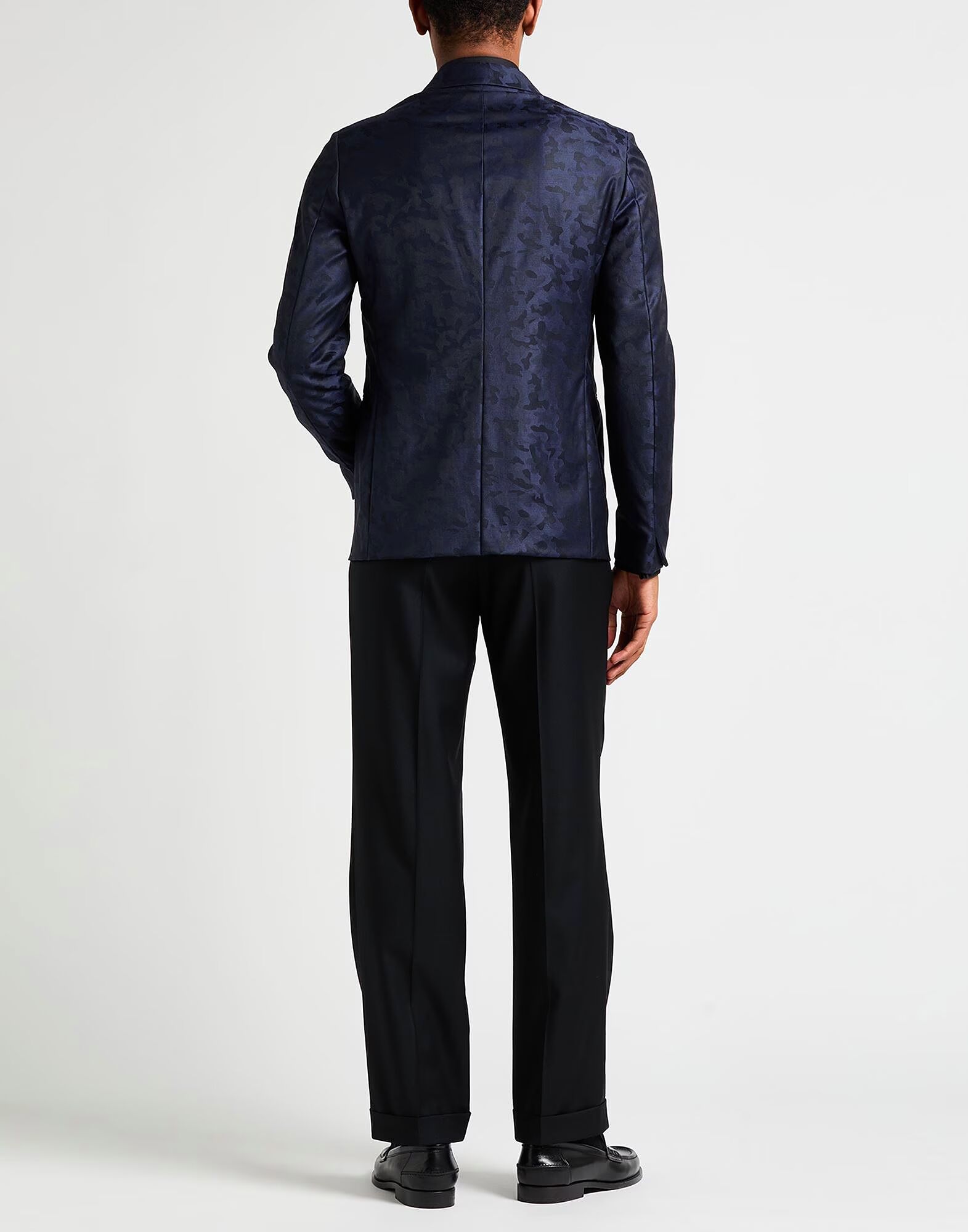 Двубортный блейзер, холодная шерсть, камуфляжный принт, без аппликаций, воротник с лацканами, длинные рукава, полностью на подкладке, застежка на пуговицы, прорезные карманы, один нагрудный карман, химчистка, не отбеливать, не сушить в сушильной машине