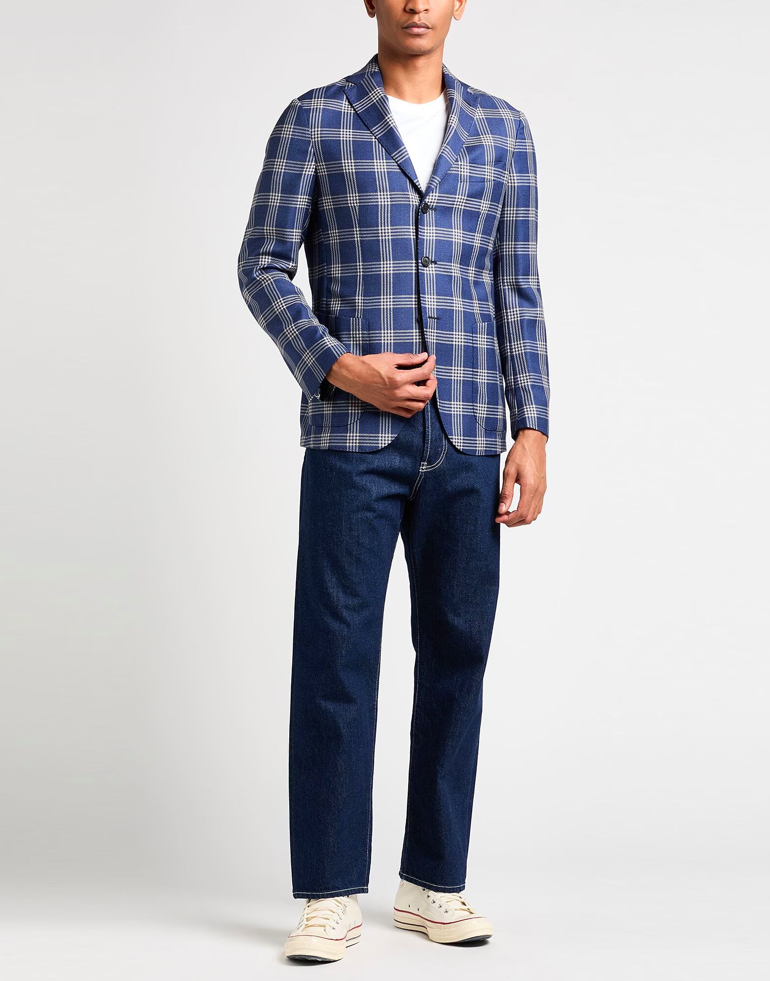 Однобортный блейзер, жаккард, клетка, без аппликаций, воротник с лацканами, длинные рукава, частичная подкладка, застежка на пуговицы, карманы, внутренние карманы, два разреза сзади, химчистка, не отбеливать, не сушить в сушильной машине Создайте идеальный образ с этим дизайнерским нарядом, подходящим для деловых встреч или особых случаев
