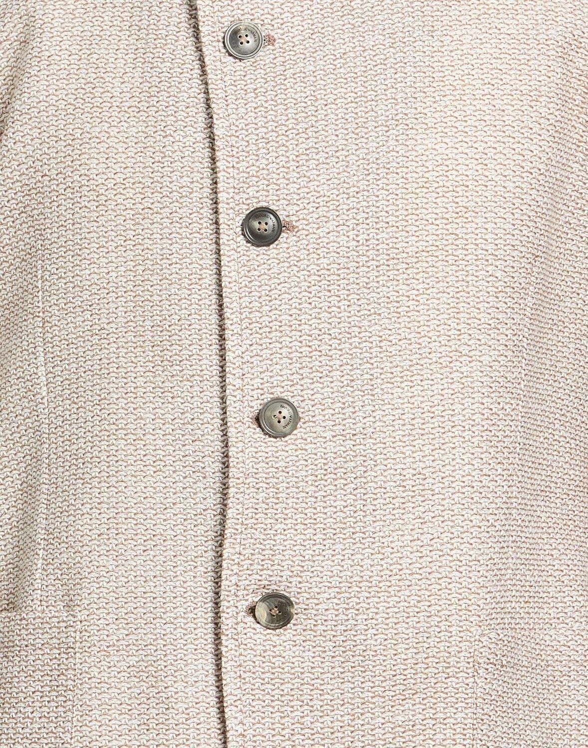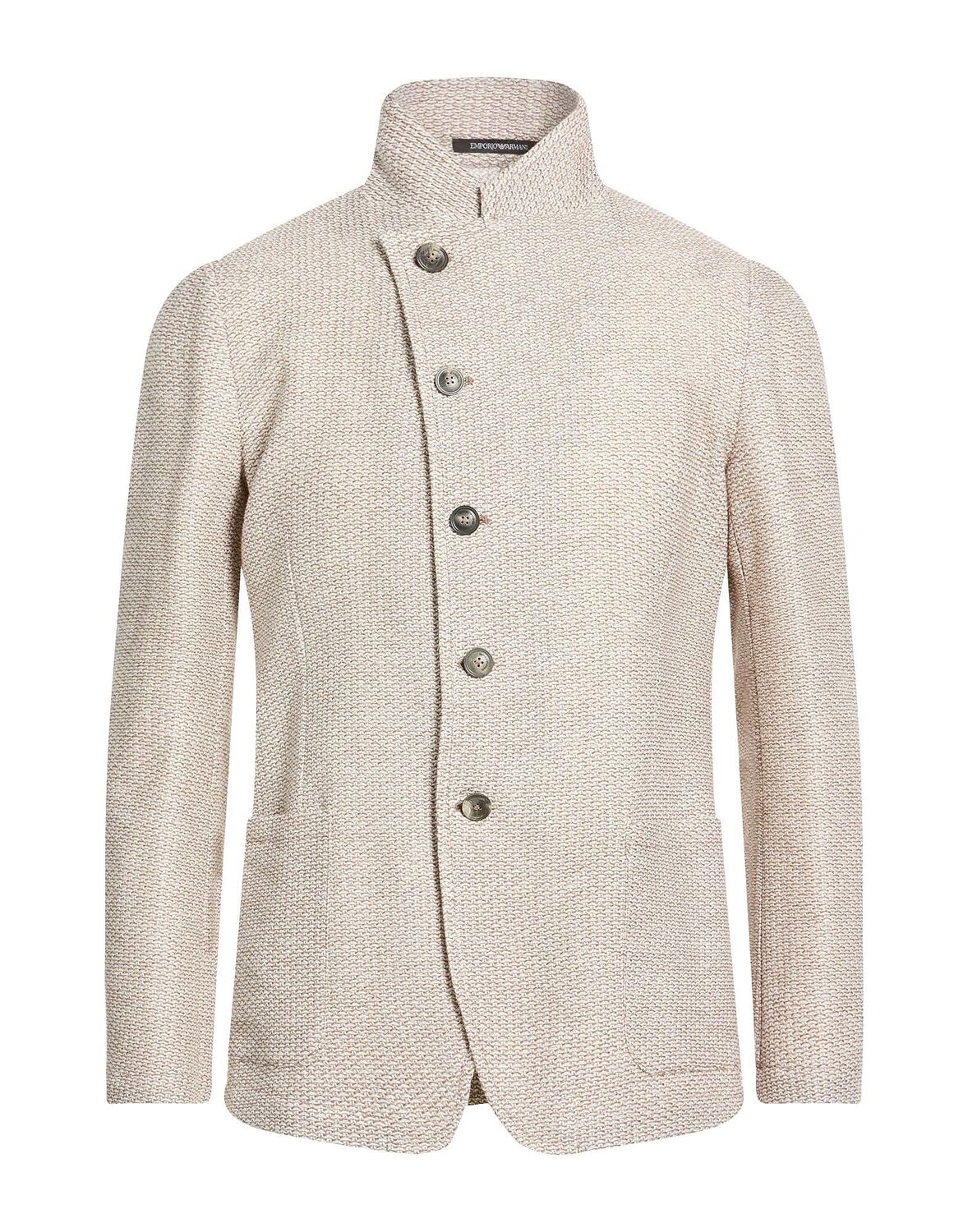 Однобортный блейзер, трикотаж, средней плотности, меланж, без аппликаций, воротник-стойка, длинные рукава, без подкладки, застежка на пуговицы, накладные карманы, содержит нетекстильные части животного происхождения, химчистка, не отбеливать, не сушить в сушильной машине