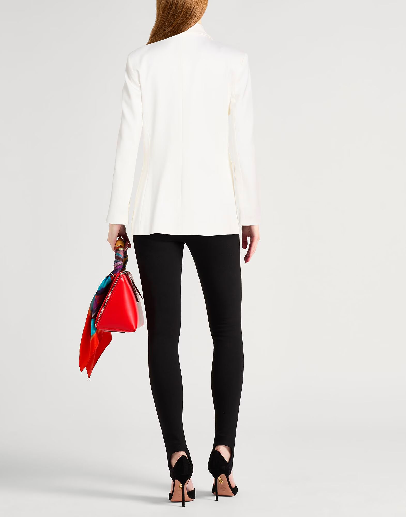Двубортный блейзер, тканый, эластичный материал, однотонный, без аппликаций, воротник с лацканами, длинные рукава, подплечники, полностью на подкладке, застежка на пуговицы, прорезной карман, химчистка, не отбеливать, не сушить в сушильной машине