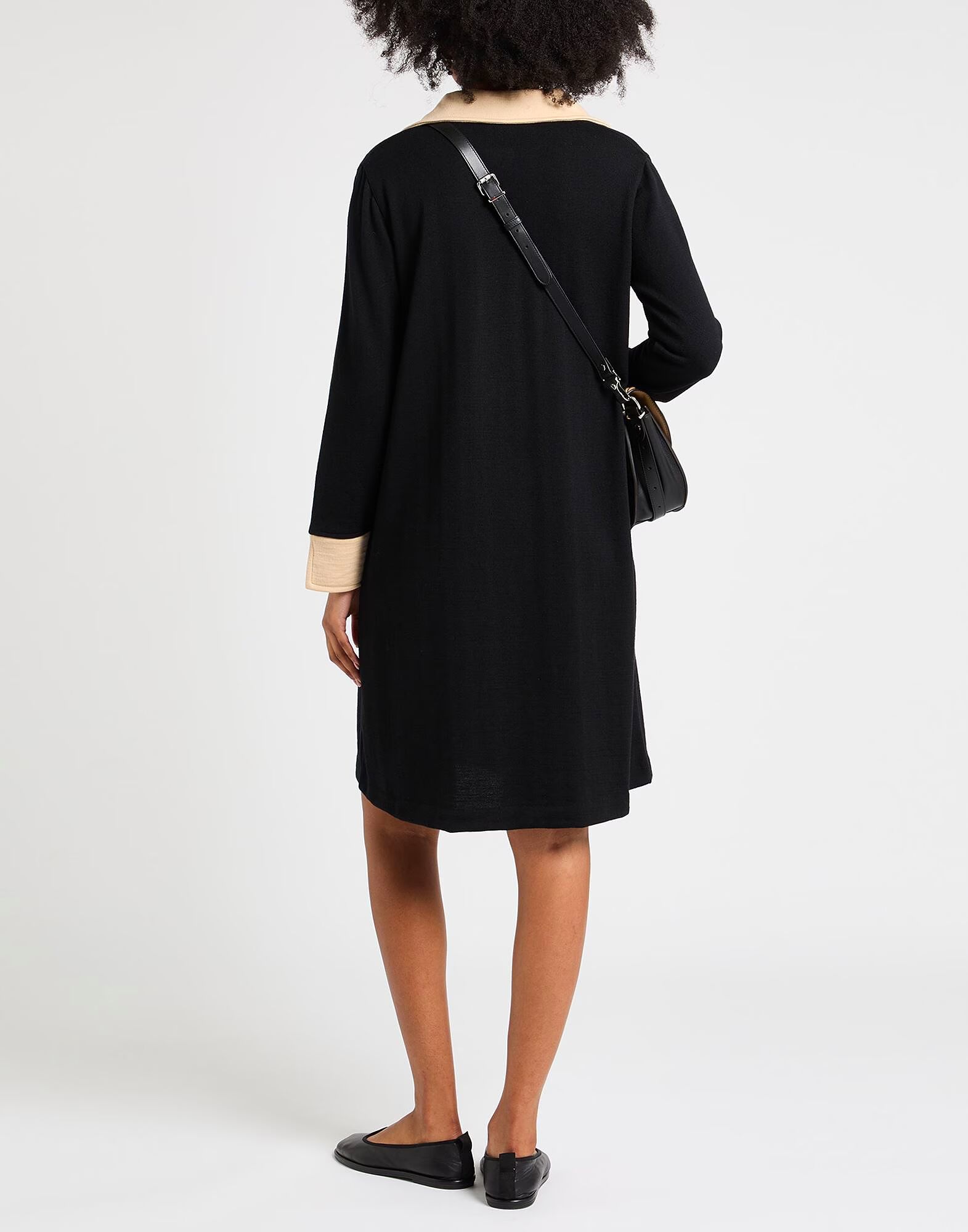 Платье-клеш, шерсть, двухцветное, без аппликаций, V-образный вырез, длинные рукава, без подкладки, ручная стирка или химчистка, не отбеливать, не сушить в сушильной машине