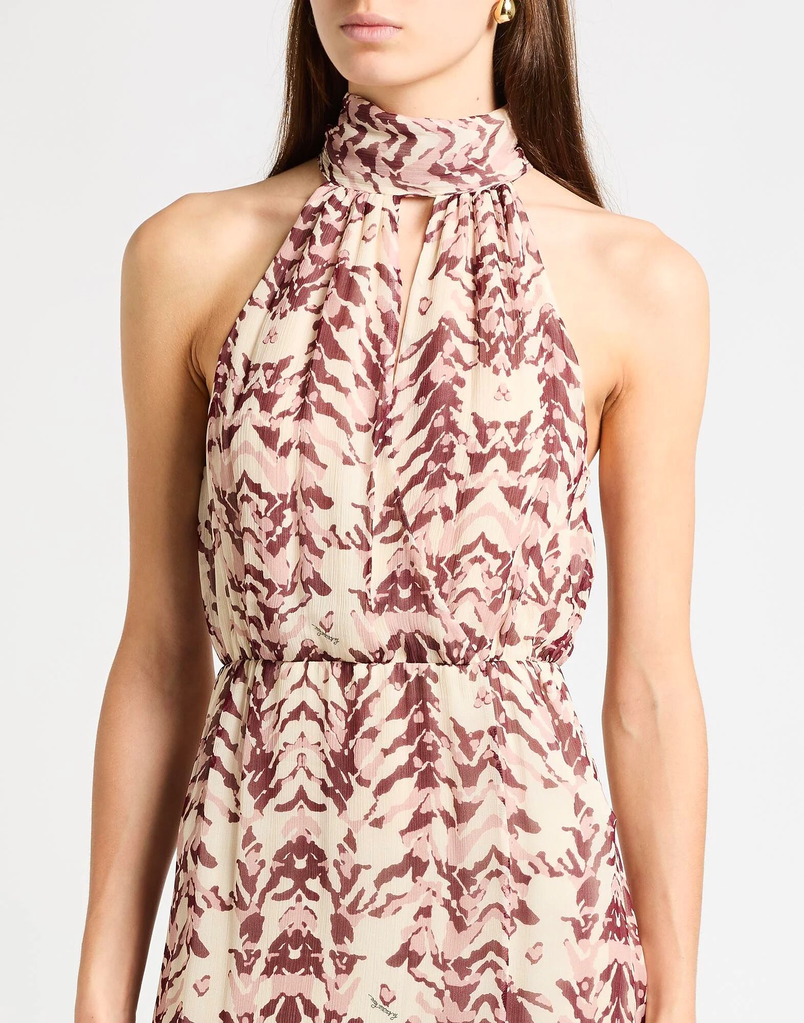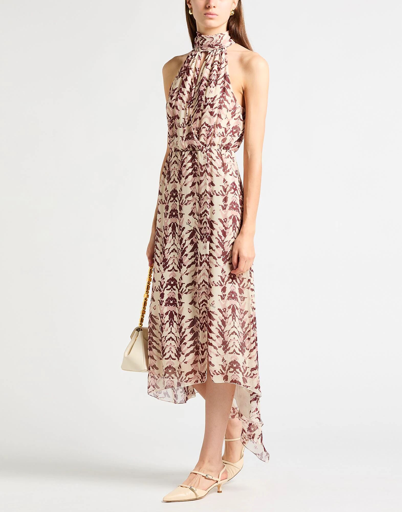 Асимметричное платье, жоржет, многоцветное, с логотипом бренда, со сборками, вырезом, воротником-халтером, без рукавов, полностью на подкладке, застежка-молния, химчистка, не отбеливать, не сушить в сушильной машине Станьте самой стильной подружкой невесты или гостьей на свадьбе в этом дизайнерском платье, идеально подходящем для любой церемонии