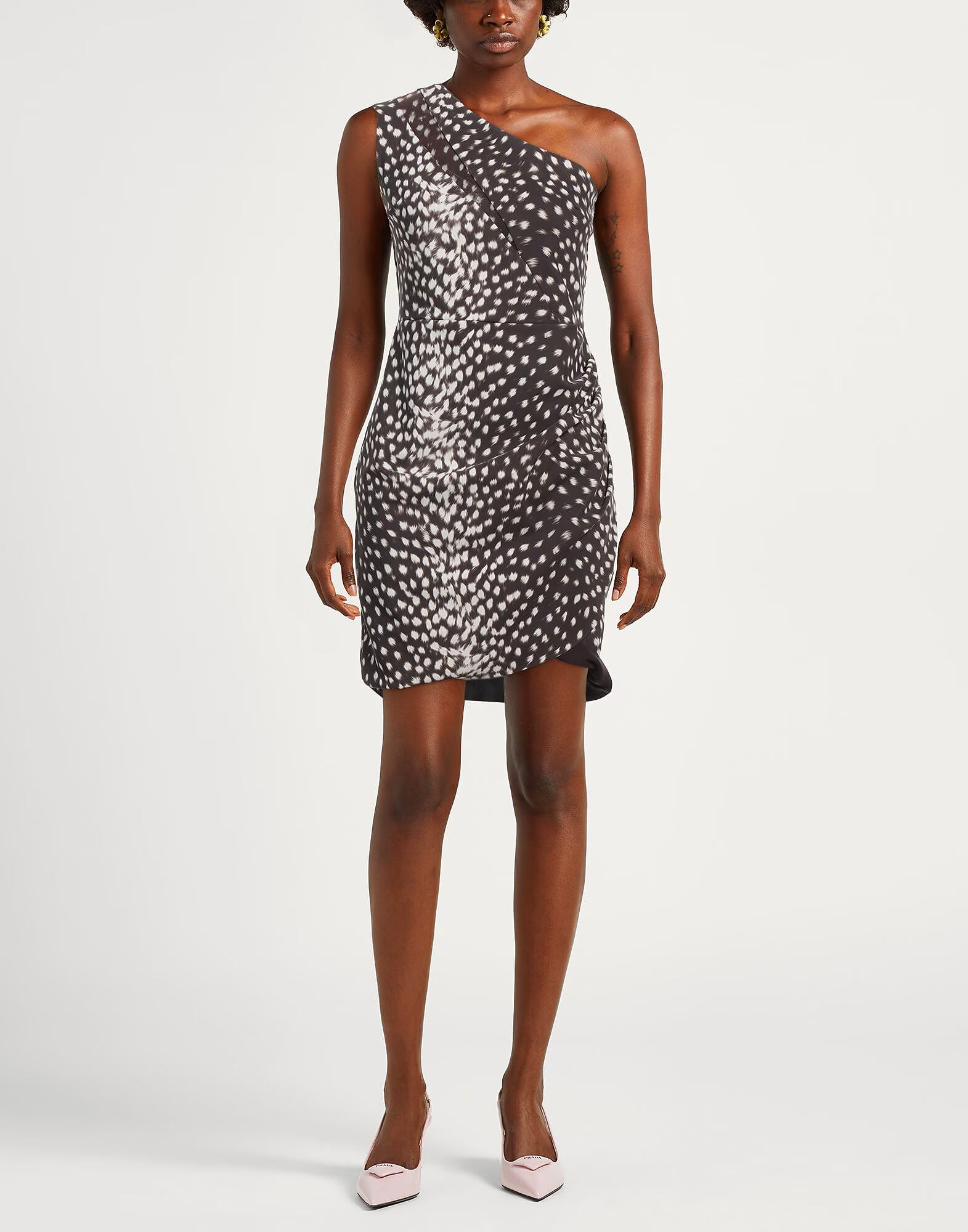 Платье на одно плечо, синтетический трикотаж, эластичная ткань, животный принт, драпировка, на одно плечо, без подкладки, ручная стирка или химчистка, не отбеливать, не сушить в сушилке, не гладить, добавьте гламура с помощью шикарных дизайнерских нарядов для вечеринки на вашем следующем мероприятии или веселом вечере