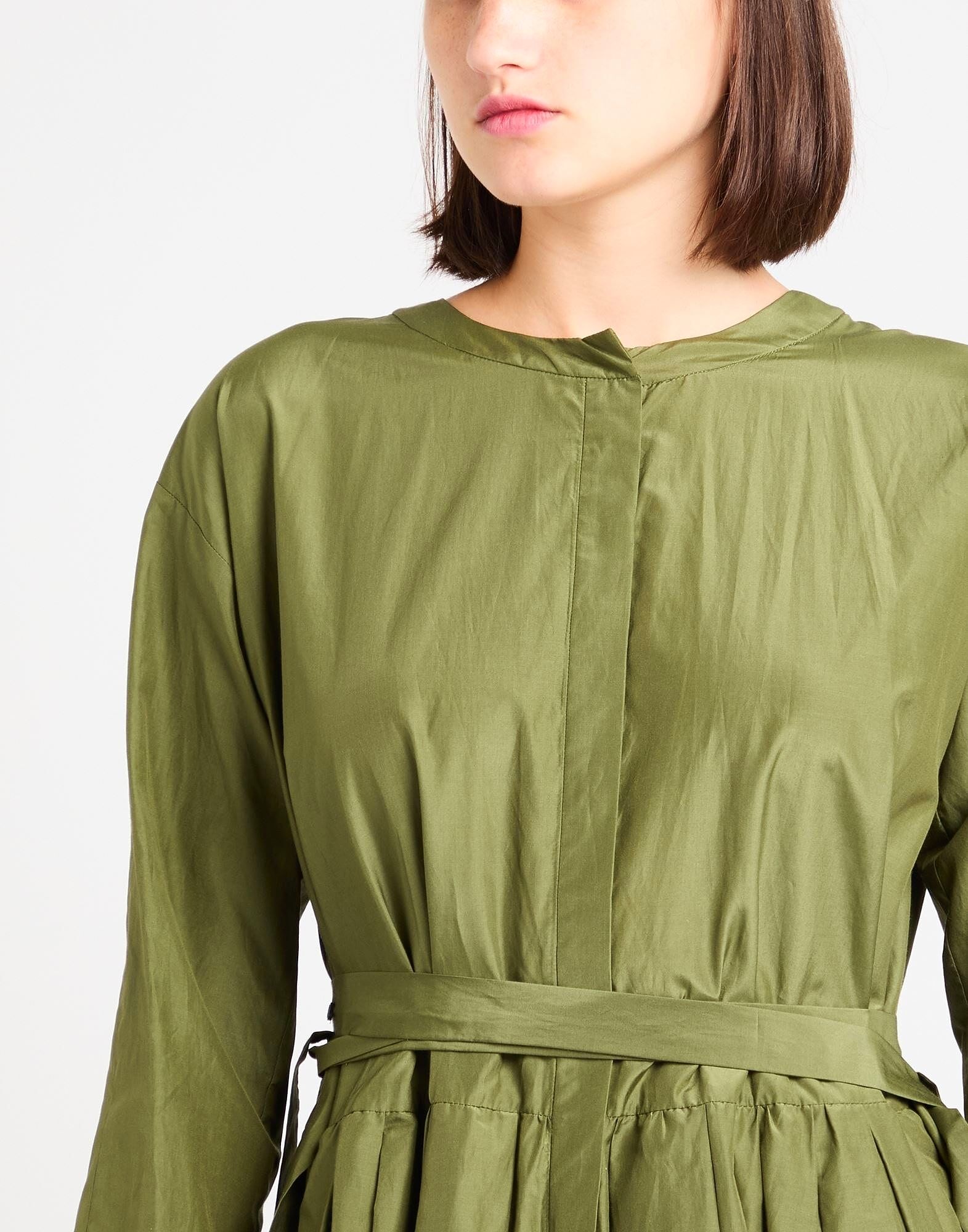 Платье в складку, тканое, однотонное, с логотипом бренда, поясом, круглым вырезом, длинными рукавами, без подкладки, потайной застежкой на пуговицы, содержит нетекстильные части животного происхождения, химчистка, не отбеливать, не сушить в сушильной машине Деловой стиль сочетается с элегантностью в этом шикарном офисном наряде, который будет вселять уверенность каждый день