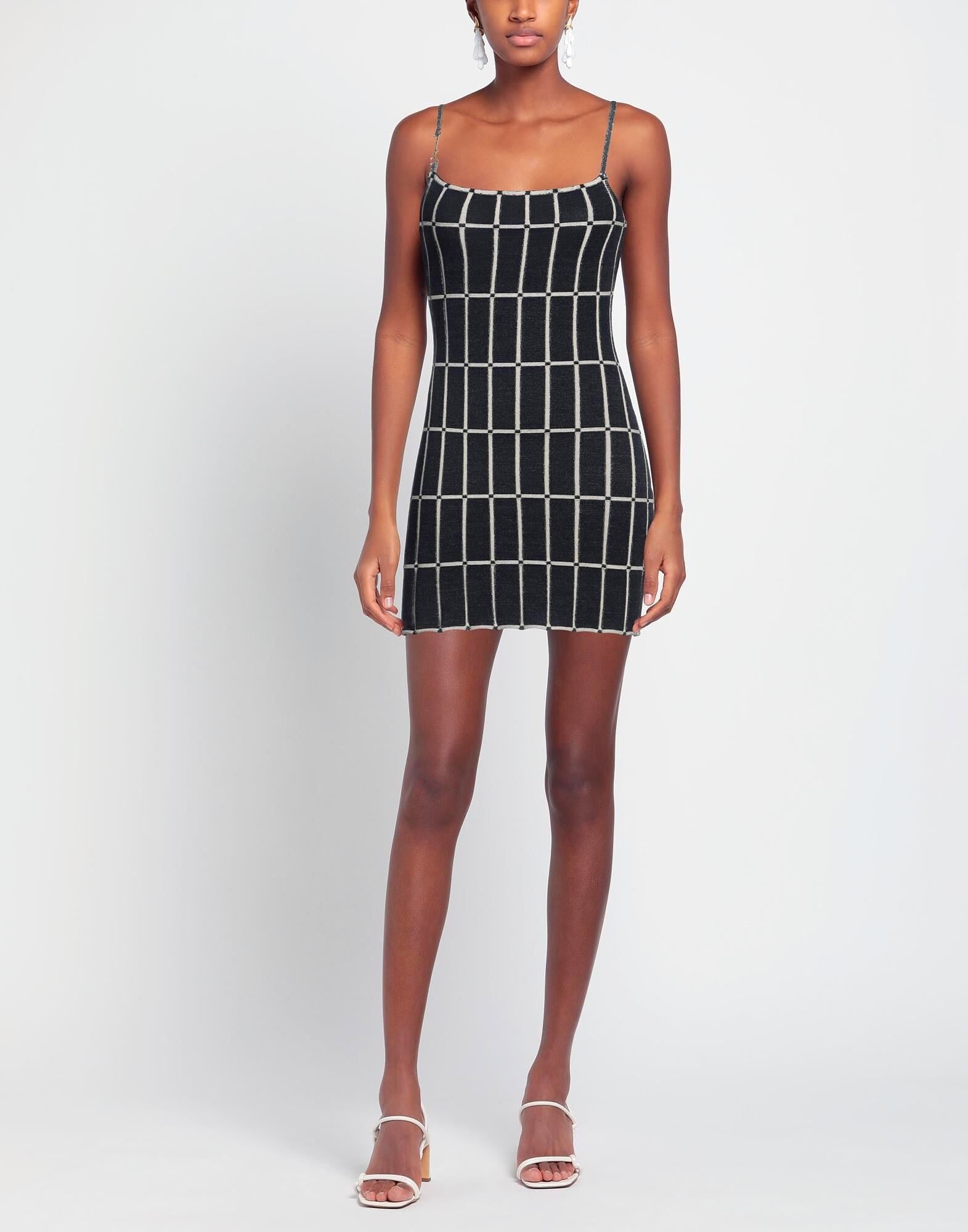 Вязаное, легкое трикотажное полотно, логотип бренда, двухцветное, квадратный вырез горловины, без рукавов, без подкладки, без карманов, эластичное, ручная стирка или химчистка, не отбеливать, не сушить в сушильной машине, облегающее платье